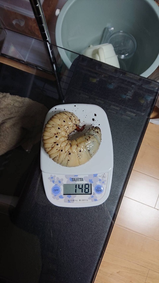 お客様で、ヘラクレスヘラクレス幼虫孵化して10ヶ月で148gのご報告
