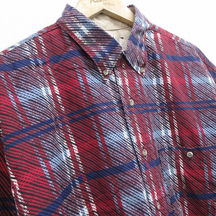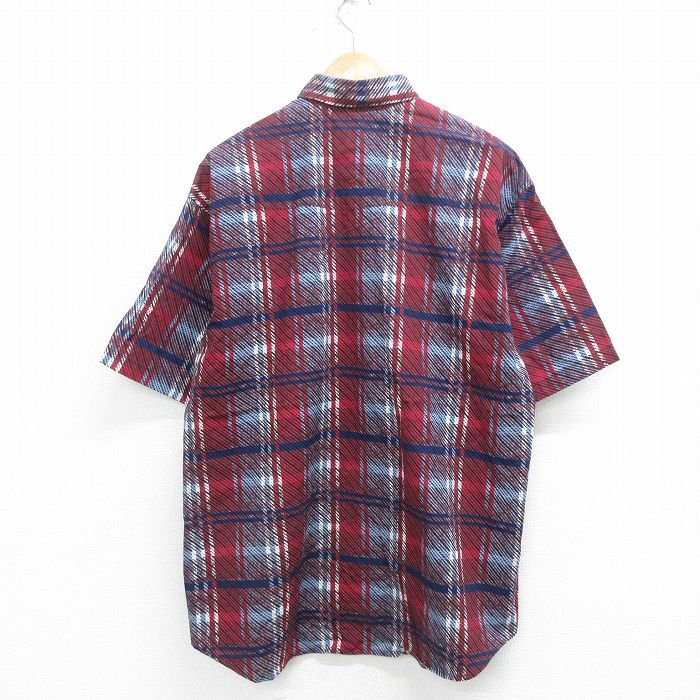 【商品名】 XL★古着 ラングラー 半袖 ウエスタン シャツ メンズ 90年代 90s 大きいサイズ ロング丈 コットン ボタンダウン USA製 赤他 チェック