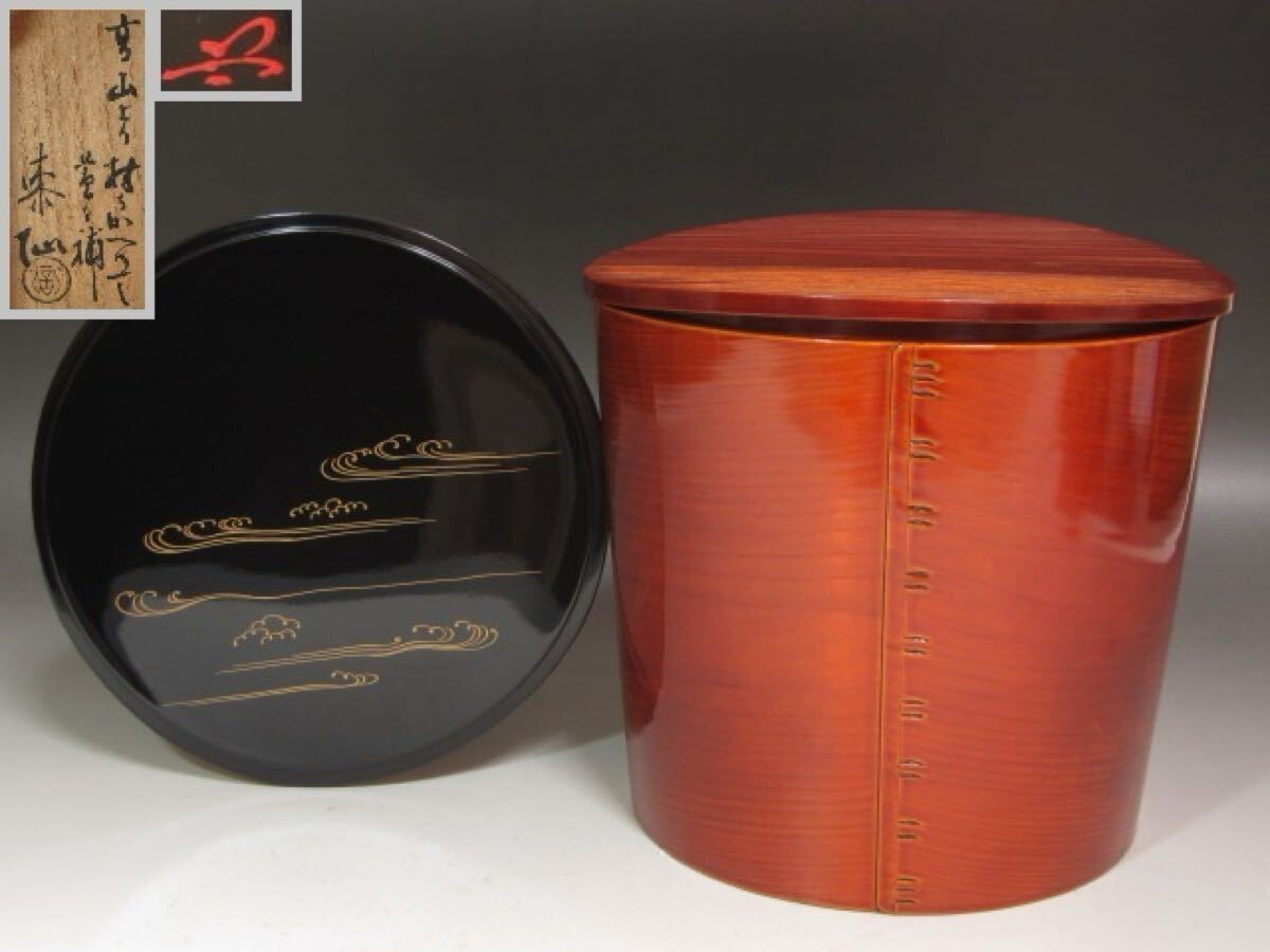 ☆ 時代 飛騨春慶曲水指 武者小路 官休庵 9代 愈好斎の花押がございます☆y414