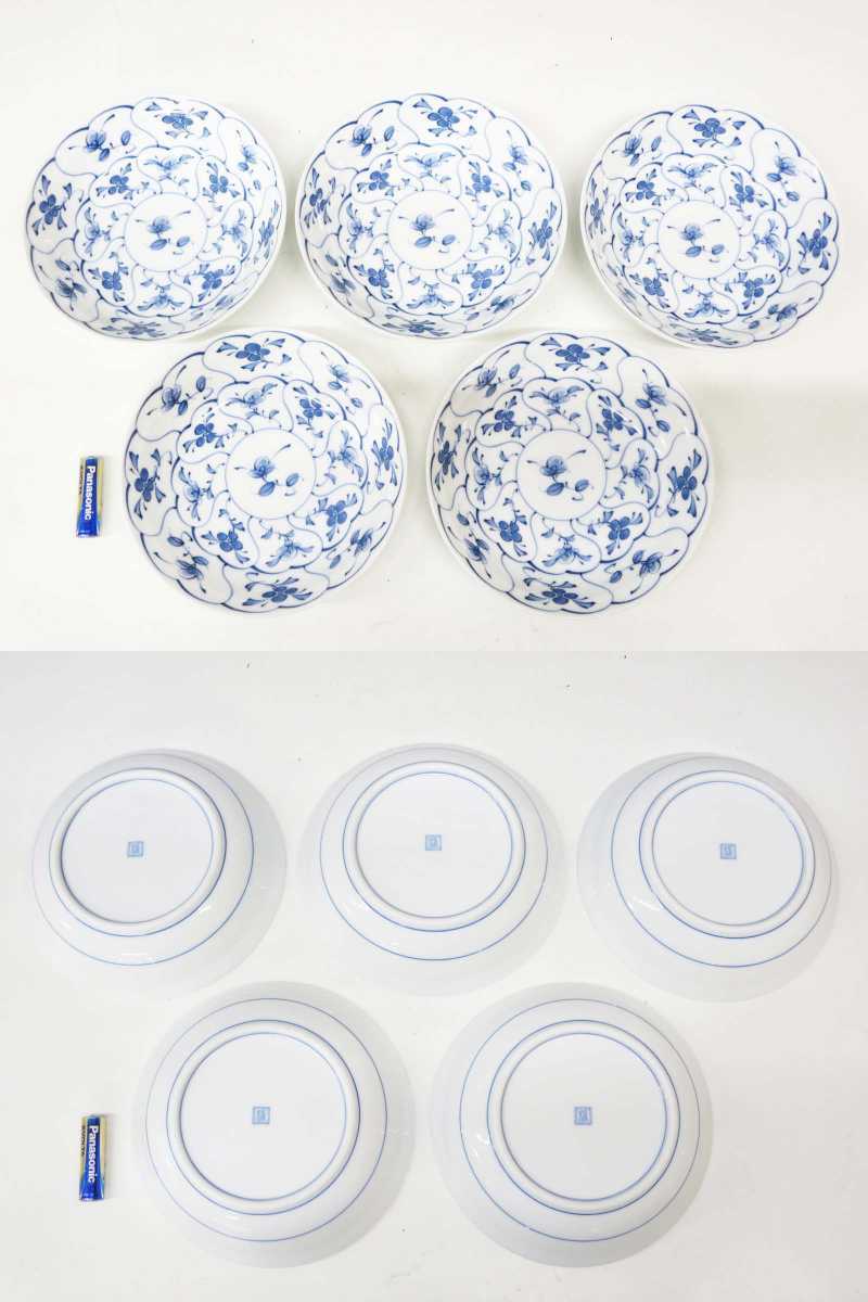 ◆(EG) たち吉 橘吉 なずな 煮物皿 5客セット 直径 約17cm 箱付き 花模様 中皿 銘々皿 盛皿 取り皿 和食器 キッチン雑貨