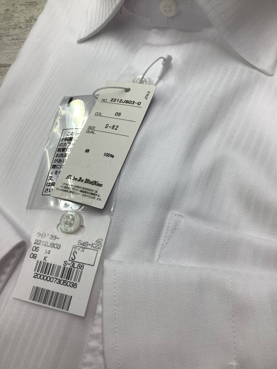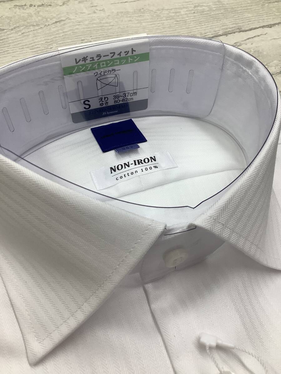 新品未使用 カッターシャツ ★ 37-82 Sサイズ ★綿100% ワイドカラードレスシャツ ノンアイロンコットン 白 ストライプ生地