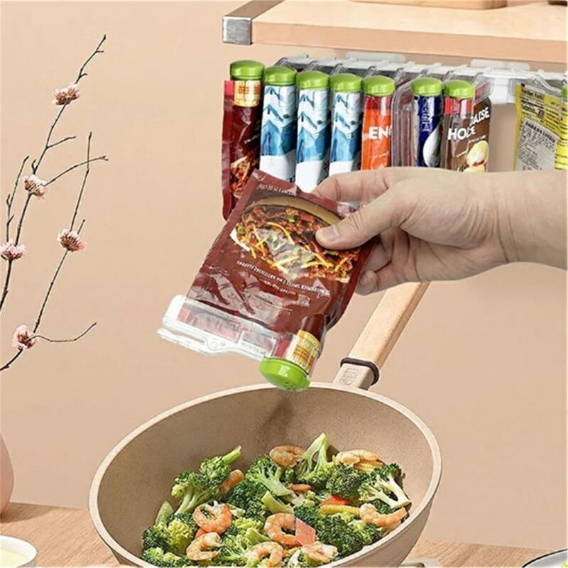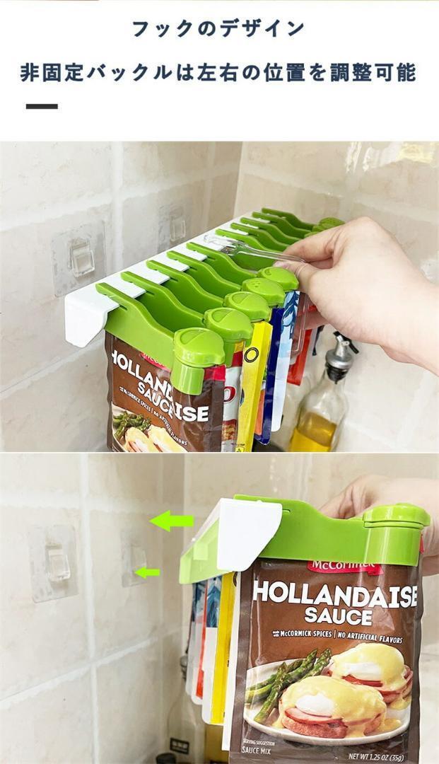 【スパイスパック壁収納棚】バックルのデザインを採用し、シーリングクリップが強くて効果的にシールし、保存時間を伸ばします。きちんと収納する,大きなストレージスペース,360°回転。