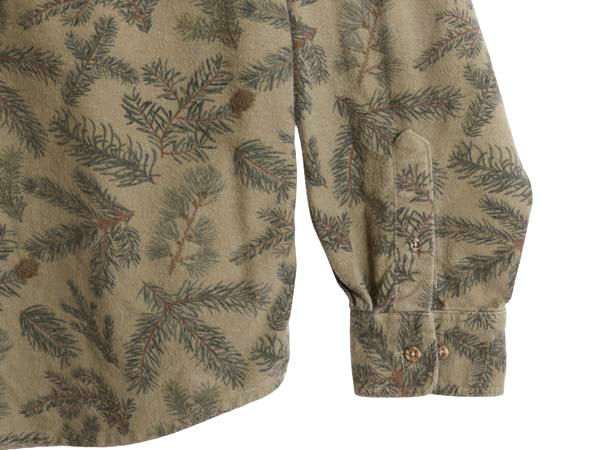 90年代のオールド 旧タグ 名作の多い黒タグ期 Eddie Bauer の 長袖シャツです。 素材は、100% COTTON ( シャモア コットン ) フランネルシャツに似たシャモア(Chamois)シャツは、 セーム皮の意味で、厚手のコットン生地を起毛させたシャツ とても丈夫なシャツで長く着込むほどに生地も柔らかくなります。 タフに使用できる、しっりとしたヘビーウェイト 着心地抜群の素材が使用されています。 希少な、MADE IN USA ( アメリカ製 ) 左胸にパッチポケット付き 合わせやすい落ち着いた、オリーブベース 松ぼっくりの付くマツ科の植物がリアルツリーカモ を 思わせるイラストで描かれた総柄 老舗アウトドアブランドらしいこったグッドデザイン こう言った商品はいつでも手に入る物ではありません 着込んでいく度に風合いの増す 人気の高いプリントフランネル ゆったりとした人気のシルエット 老舗ブランドが手掛けたたしかなつくり 1枚で様になる、使い勝手の良い 長く愛用して頂ける商品です。 |
