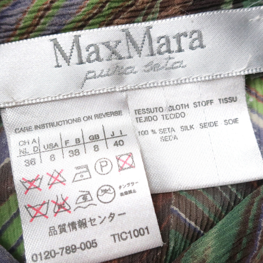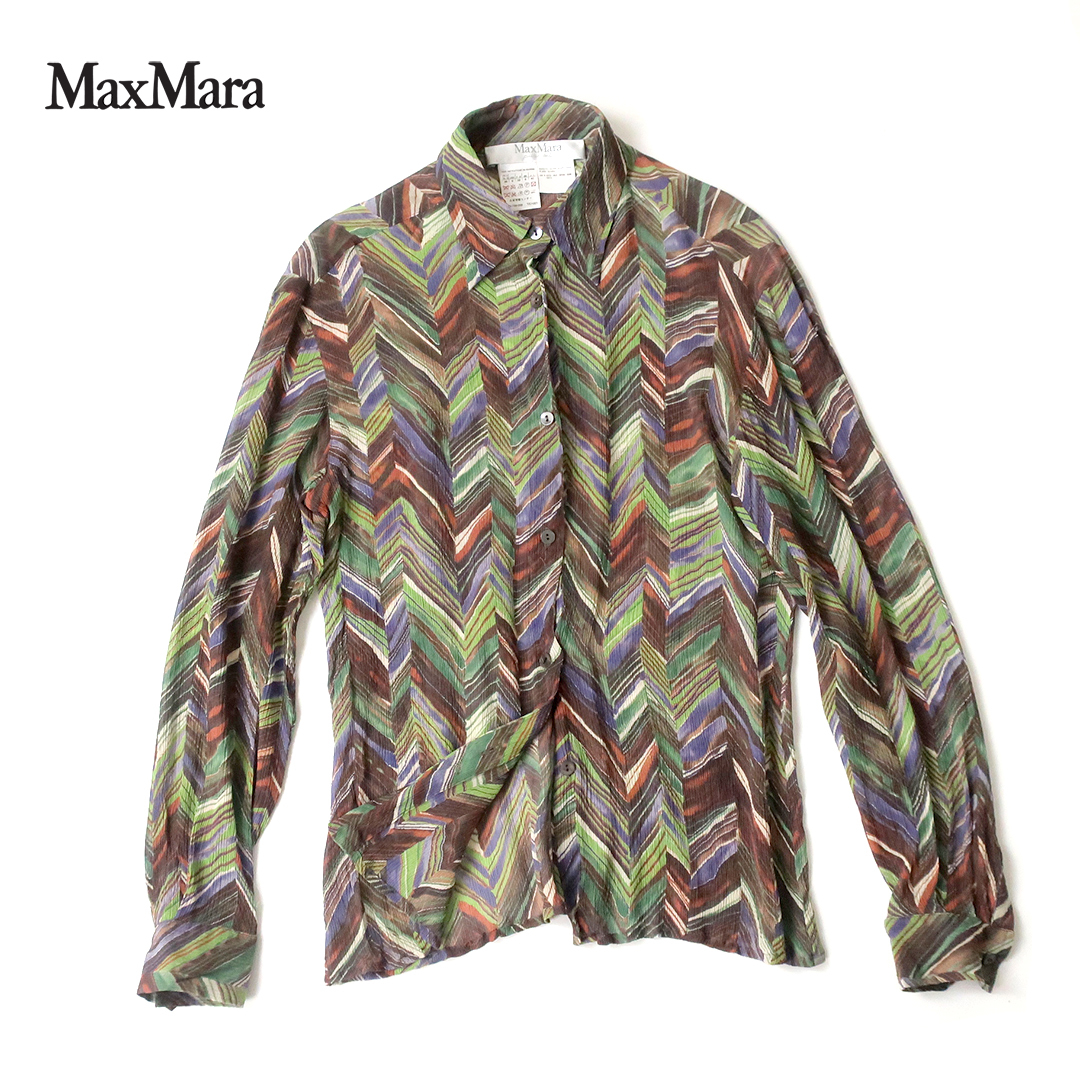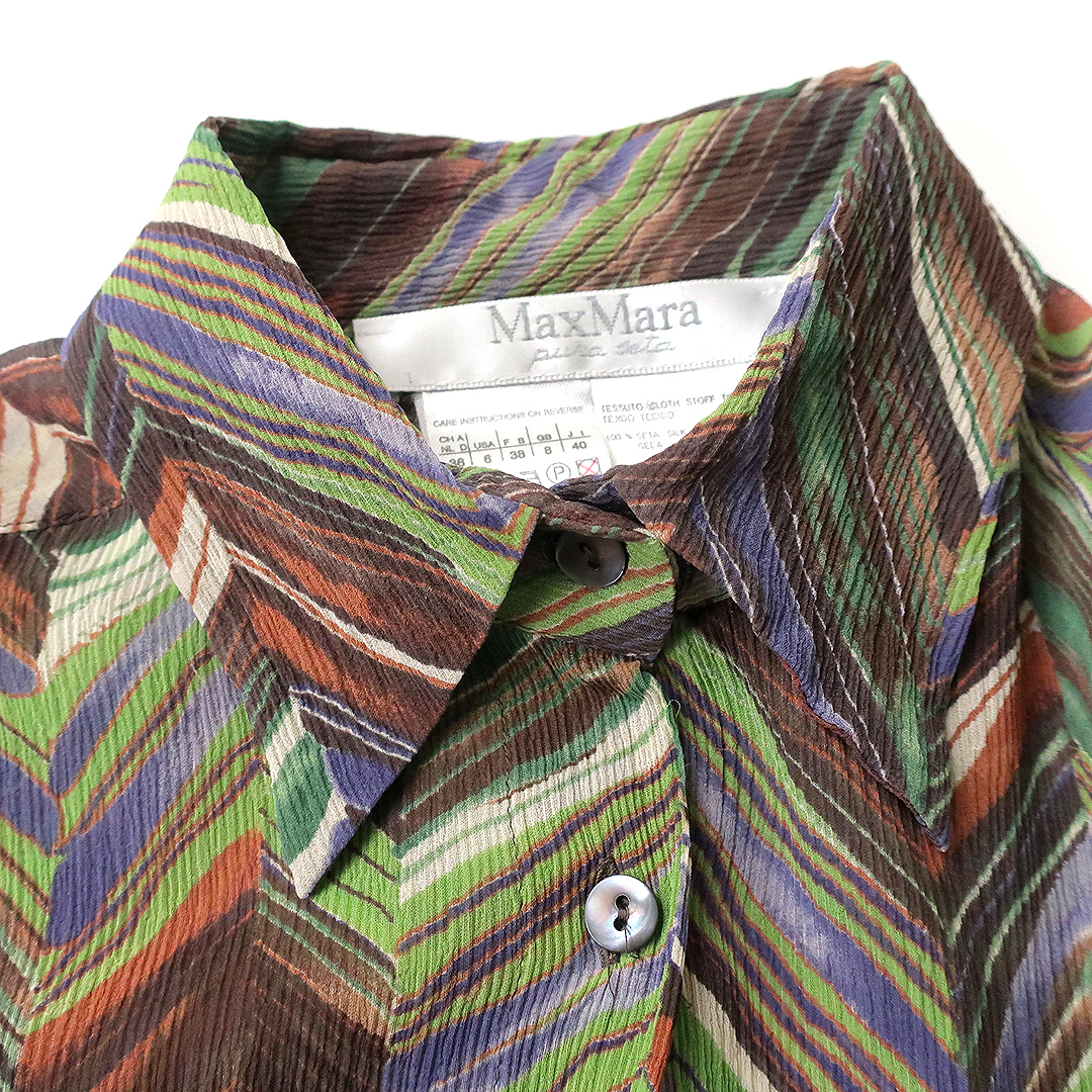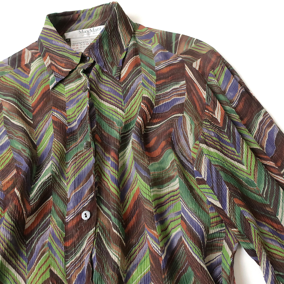 Max Mara シルク生地シフォンプリーツシャツ ヘリンボーンストライプ/マルチカラー 40