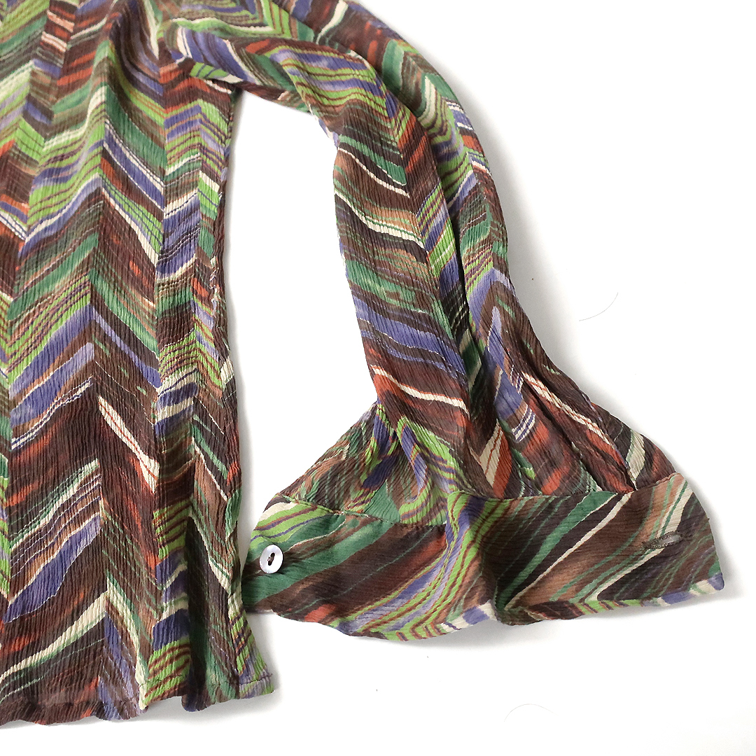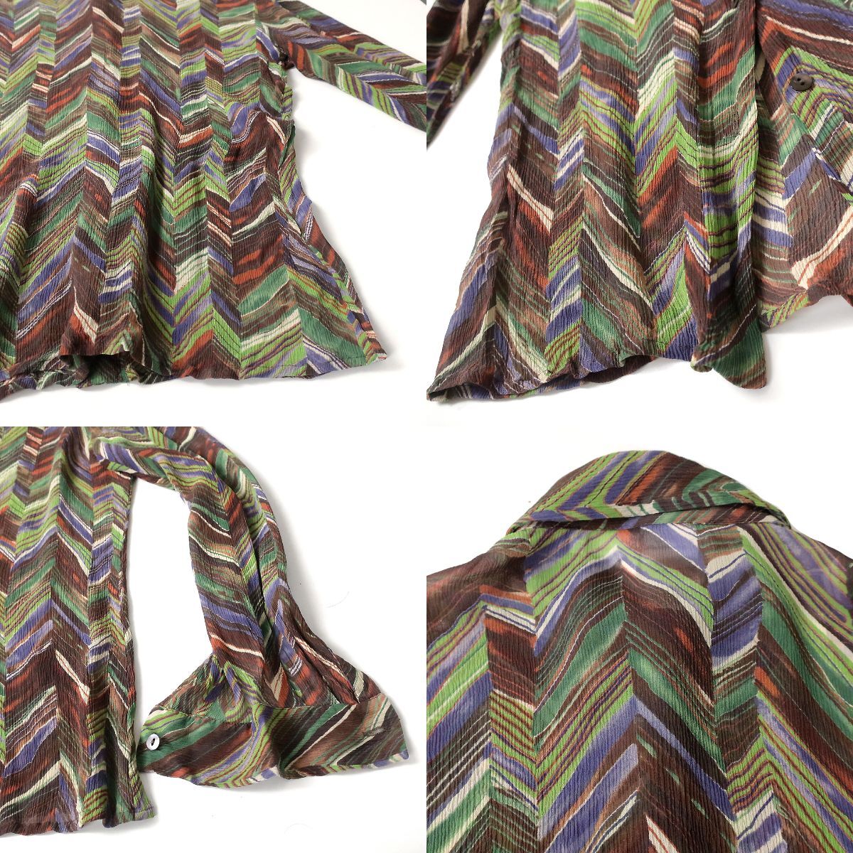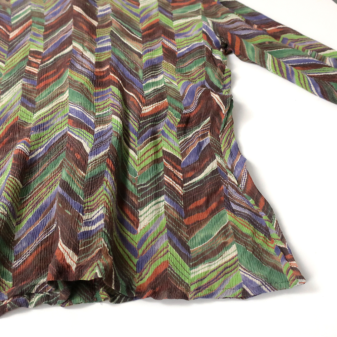 Max Mara シルク生地シフォンプリーツシャツ ヘリンボーンストライプ/マルチカラー 40