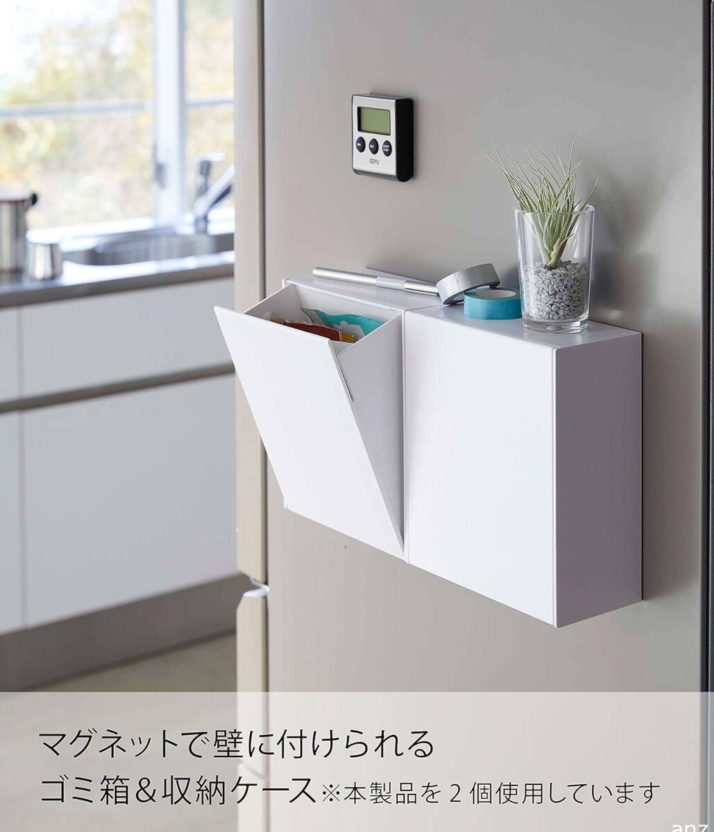 山崎実業(Yamazaki) マグネット ダストボックス & 収納ケース ホワイト 約W17XD8.7~16XH20cm タワー