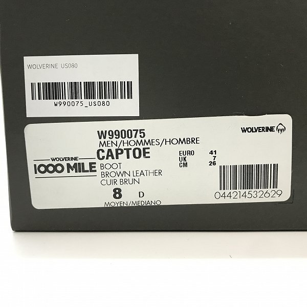 | WOLVERINE/ウルヴァリン 1000MILE BOOTS CAPTOE レザーブーツ W990075 /8D /080 | |||||||||||||||||||||||||