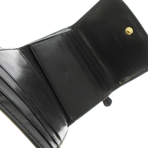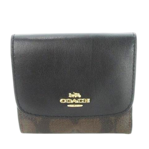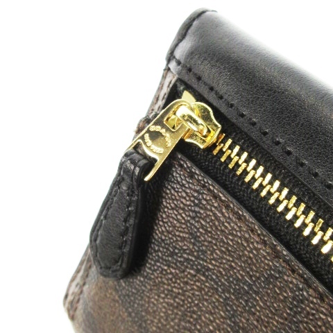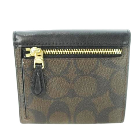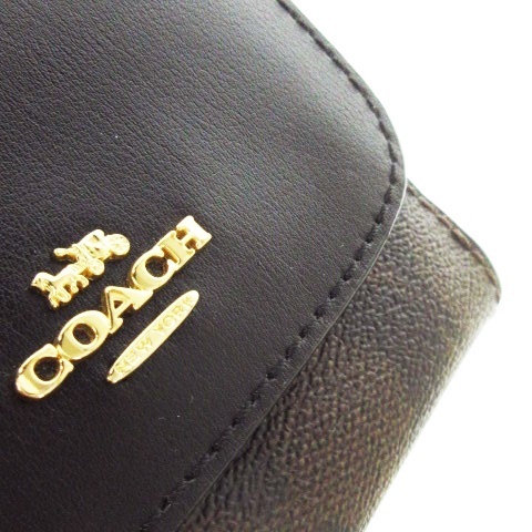コーチ COACH 二つ折り財布 ウォレット 小銭入れあり フラップ PVC レザー 革 シグネチャー ロゴ 黒 ブラック /CK31 ■GY18 レディース