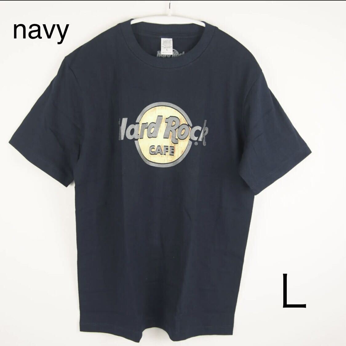 【新品・送料無料】HardRock Cafe プリント ロゴ Tシャツ 紺 ネイビー Lサイズ ロゴTシャツ ハードロックカフェ