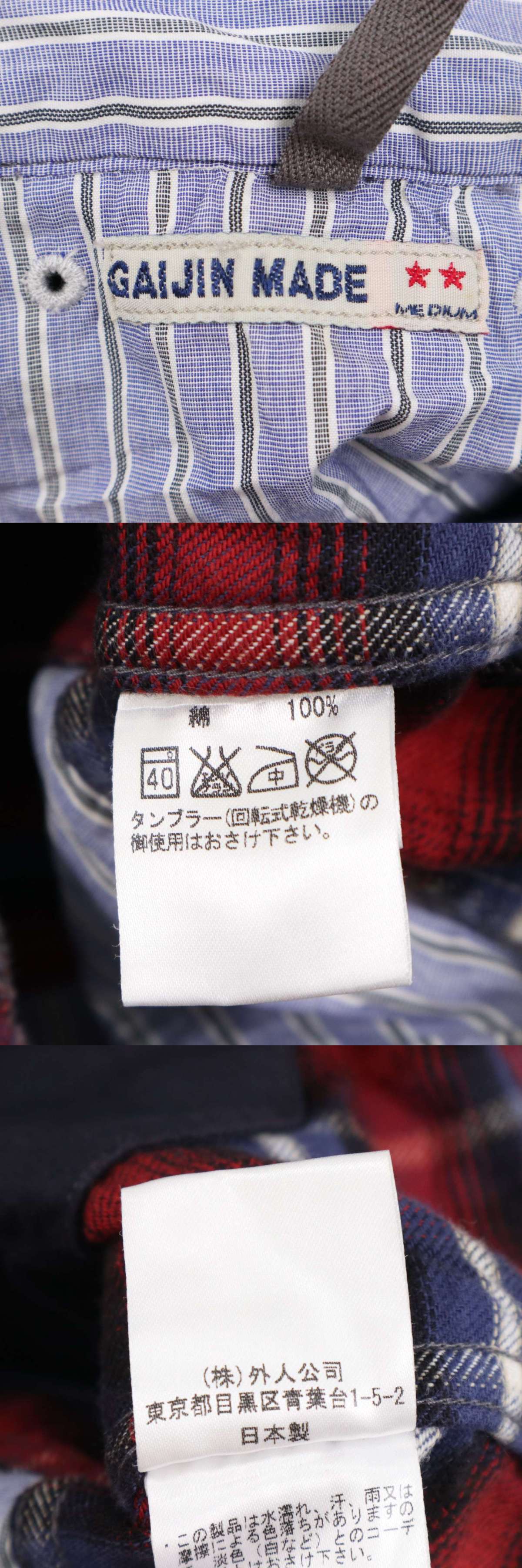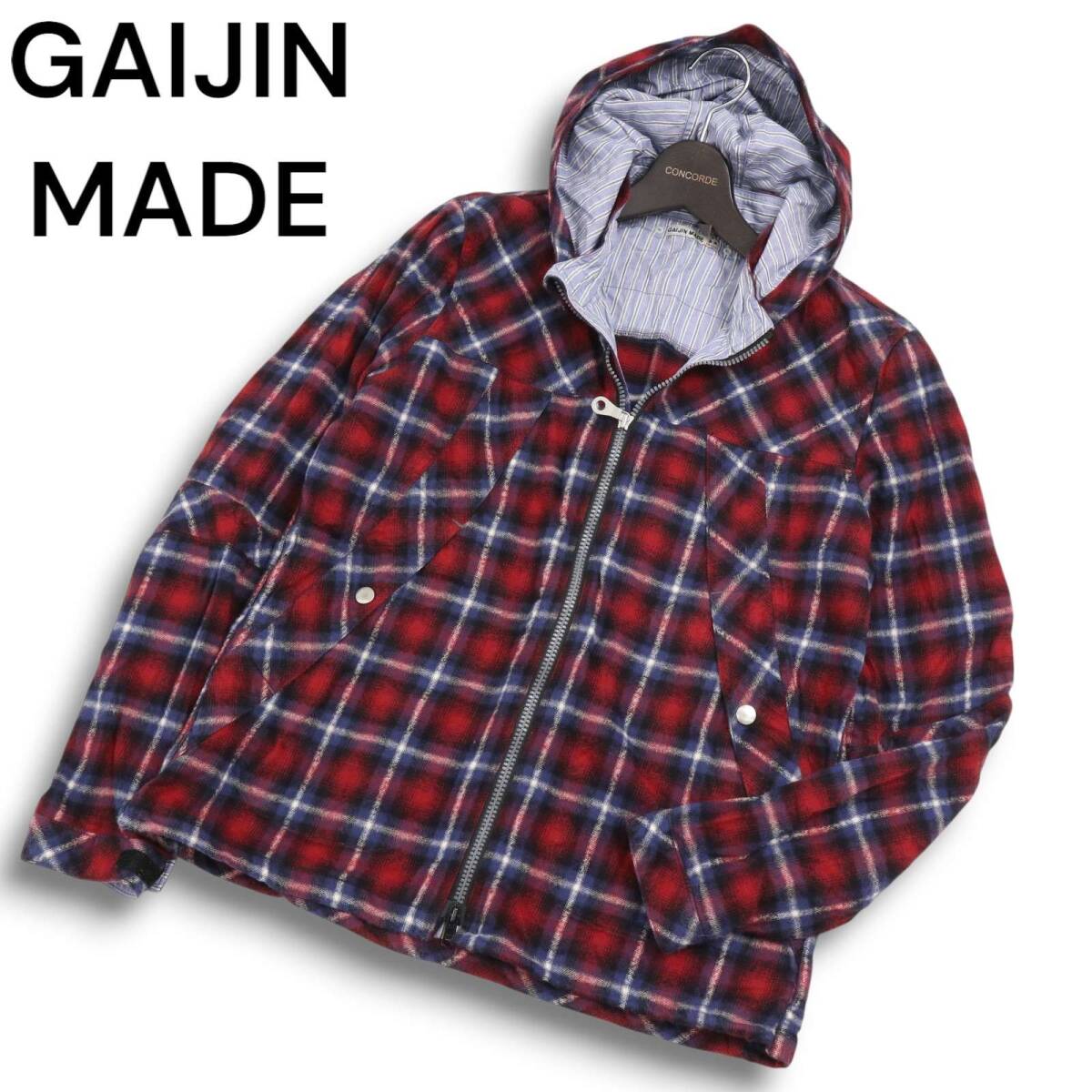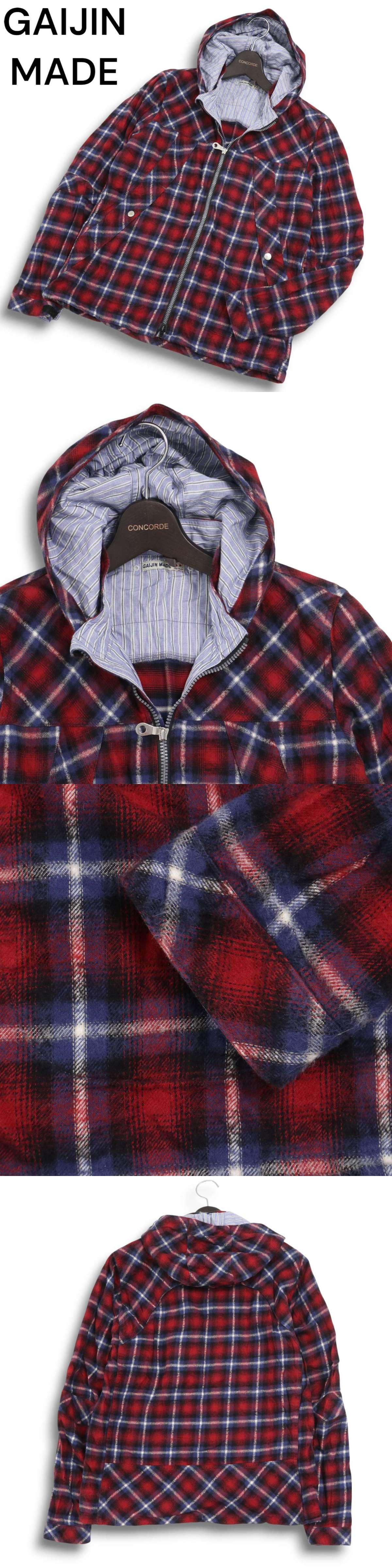 GAIJIN MADE ガイジンメイド ハリラン 秋冬★ ダブルジップ チェック フランネル シャツ パーカー Sz.M メンズ 日本製