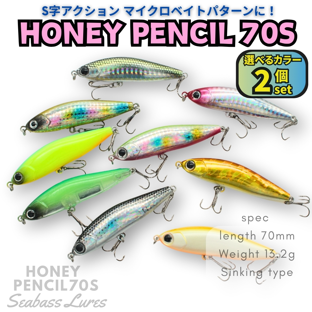 【送料無料】ハニーペンシル70S 2個セット 70mm 13.2g S字系 シンキングペンシル シーバスルアー マイクロベイト ハクパターン バチ抜けに
