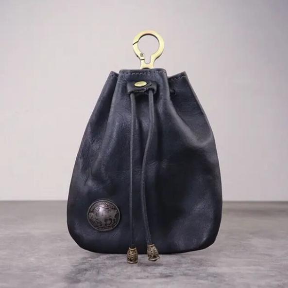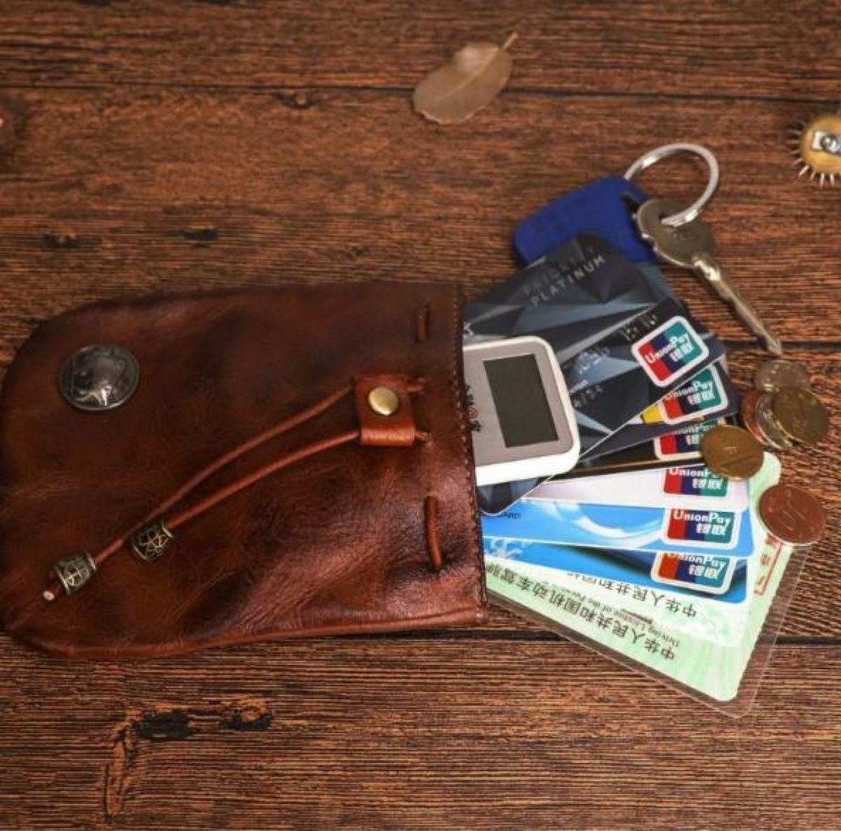 ビンテージ風のデザインで無骨なイメージを演出し、あなたの日常にアクセントを加えます。小物や小銭入れとしてはもちろん、内部にはキーを収納するためのリングが付いており、キーケースとしても活用できます。