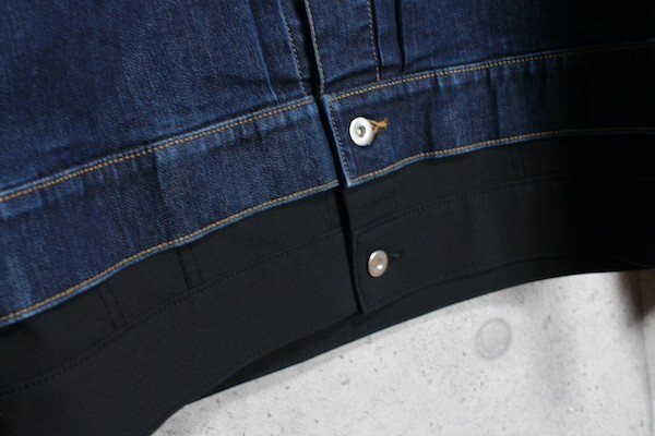 《素材》 よこ糸にポリエステルとポリウレタンを使用した高い伸長性、回復性が特徴のハイストレッチデニムです。 別地:希少性の高いコットンリッチな混紡糸を使用することで上品な表情を可能にした素材です。