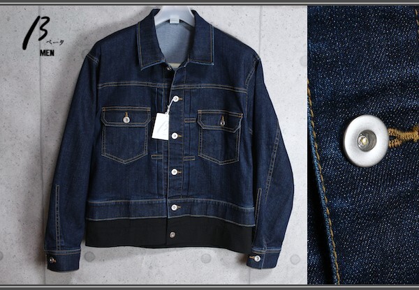 コムサ系の高級スポーツカジュアルブランド、ベータメン(β MEN)のコットンリッチ レイヤード ハイストレッチ デニムブルゾン。