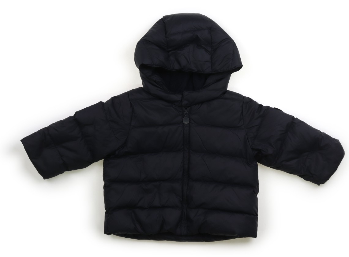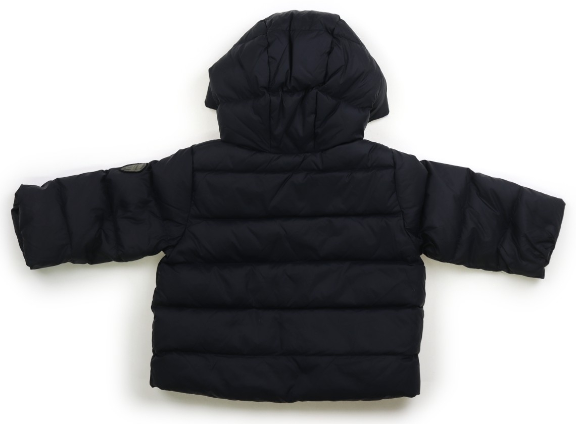 ナイロン地。中綿ダウンフェザー。裏地はシャツコール地。フードは縫い付けです。実際のサイズ表記は、18。ブランドタグが逆さに縫製されています。裏地に毛羽の付着が見られます。