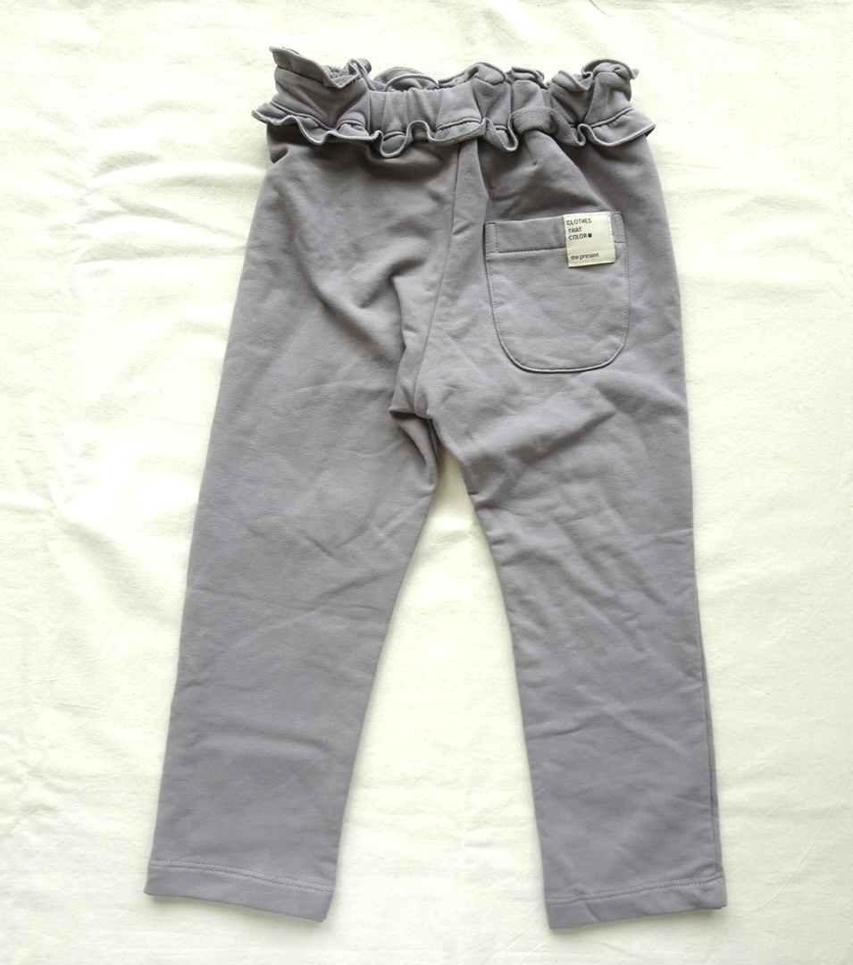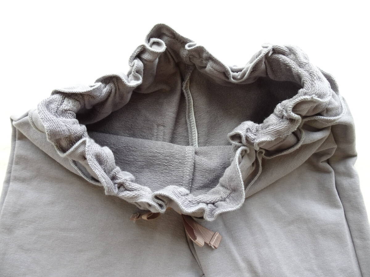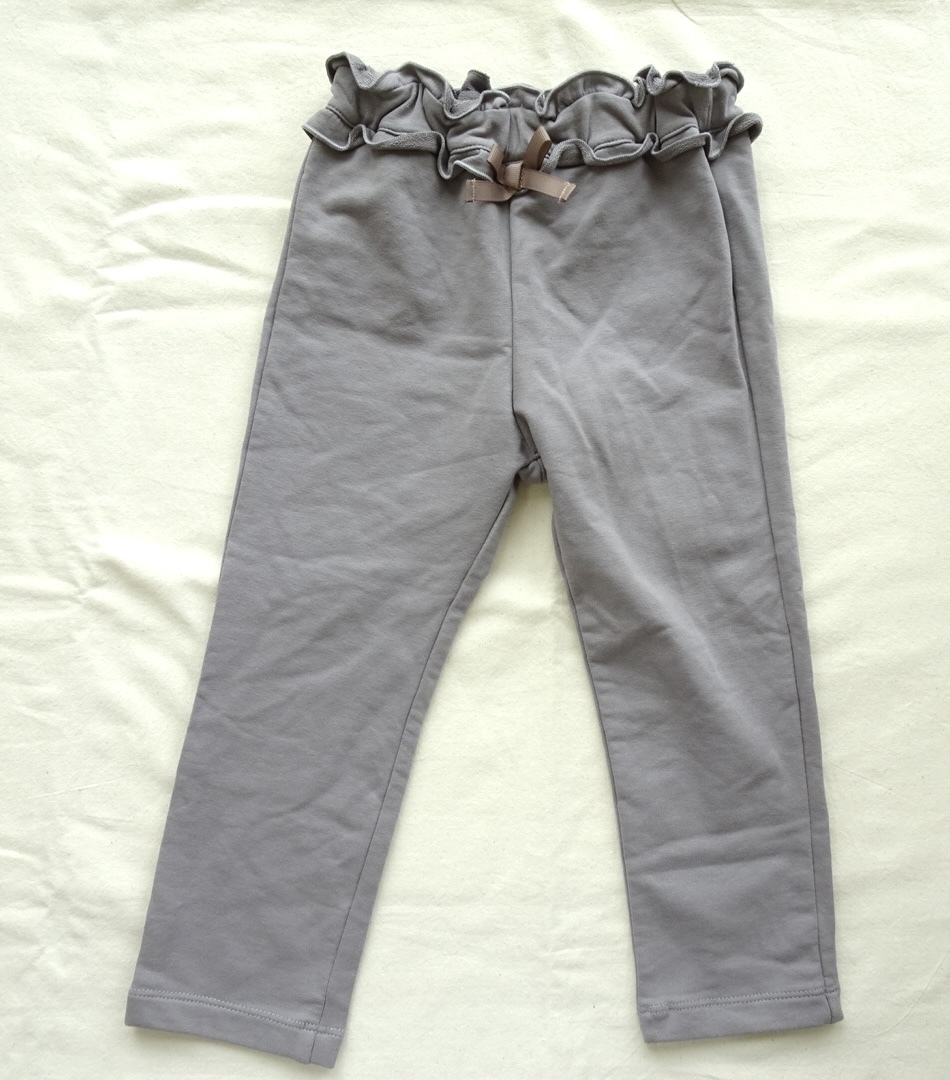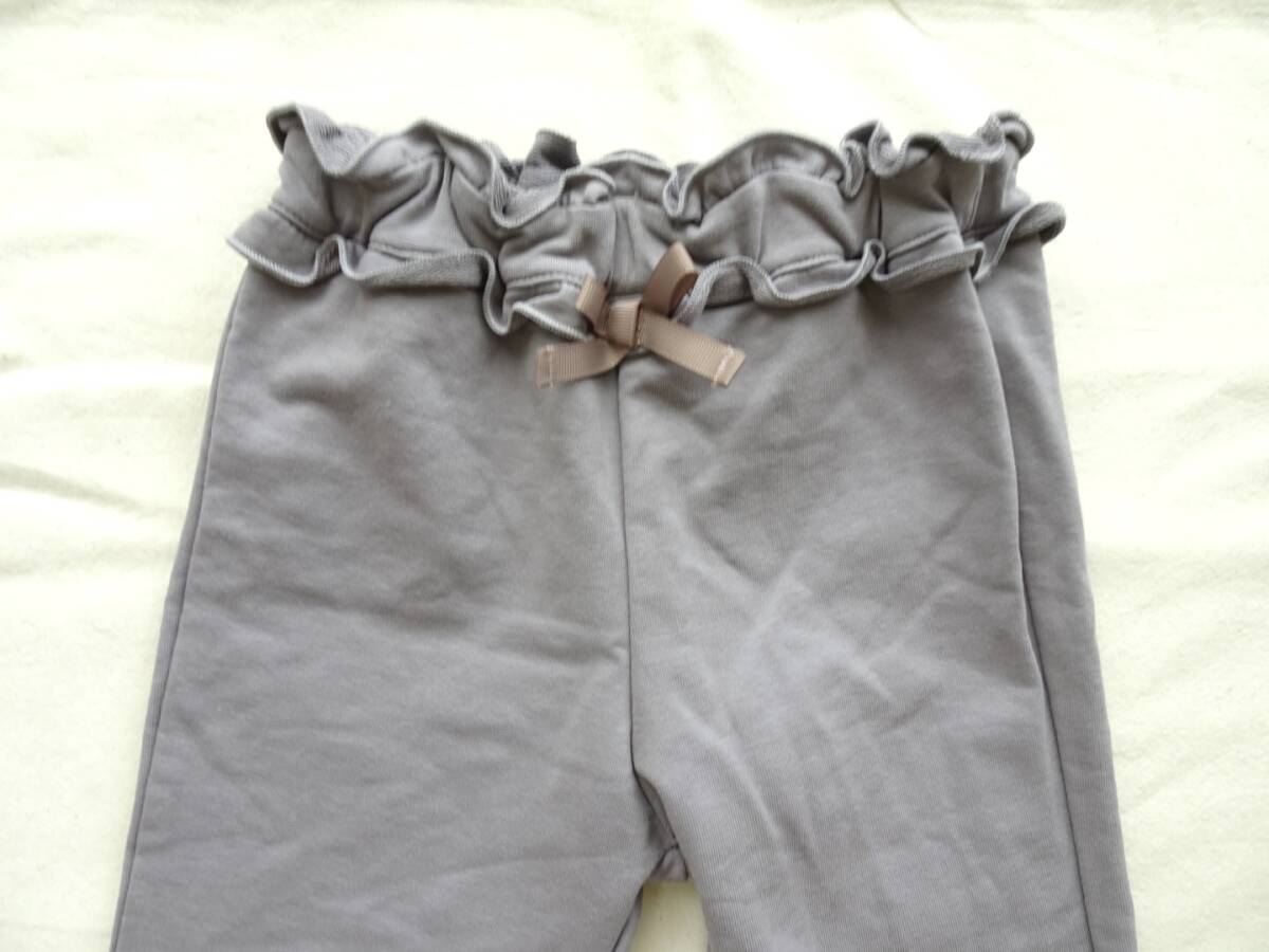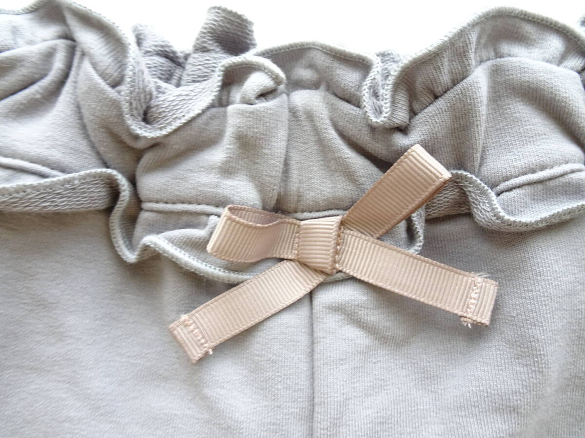 グレーのスエット地でウエスト裾のフリルデザインのお品です。