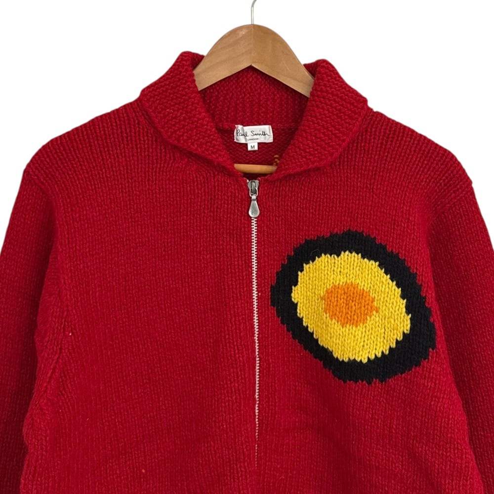 良品 Paul Smith ポールスミス ヴィンテージ ターゲットマーク カウチンニットジャケット M レッド