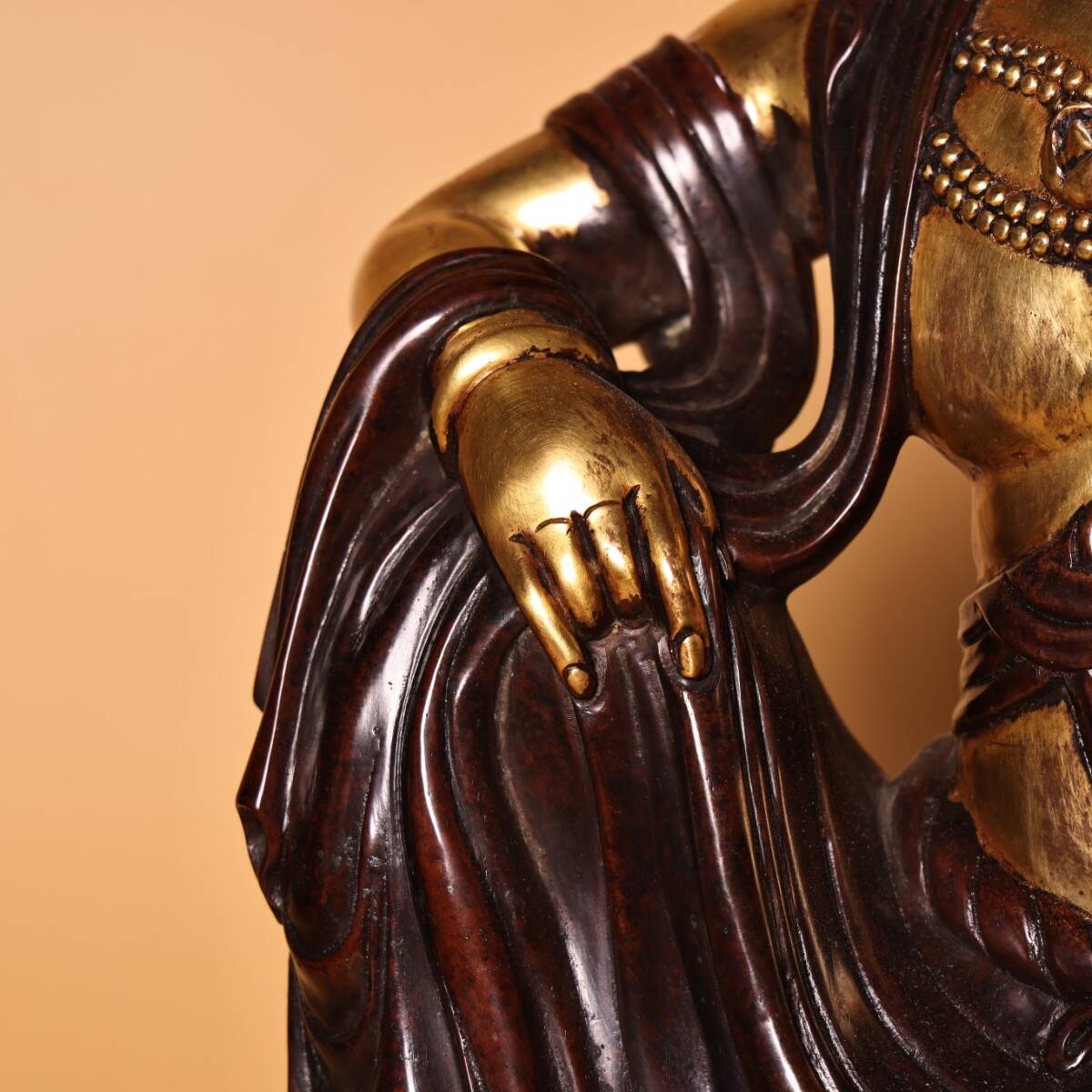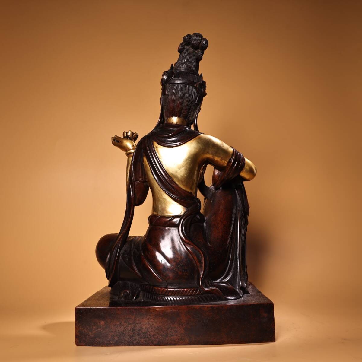 *珍品旧蔵* 大明 永樂年製 純銅 紫銅 高浮彫鏨刻彫花塗金 自在觀音菩薩 仏像 奉納されていた 供養品 極細工 中国古玩 骨董品 古美味 H49