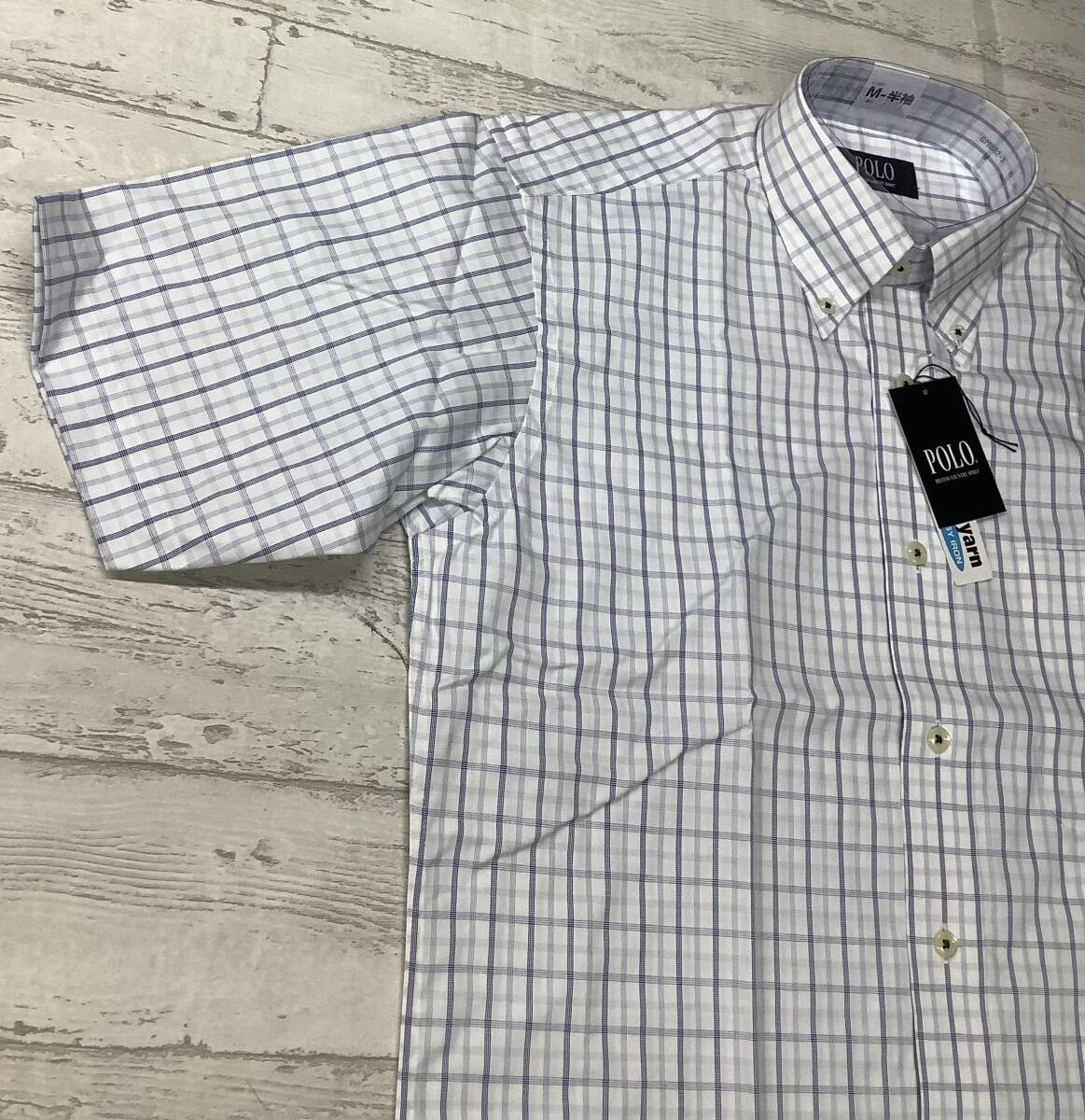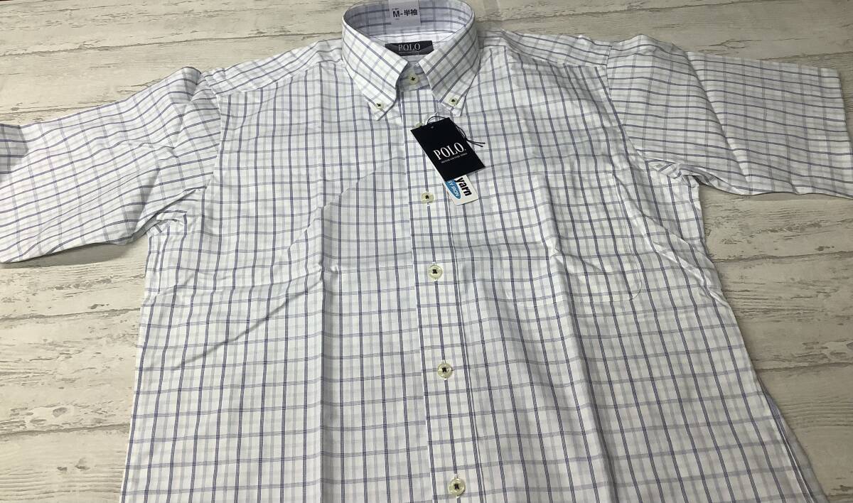訳あり 新品未使用 39Mサイズ半袖 ★ボタンダウン カッターシャツ 綿100% ★チェック柄 ブルー系