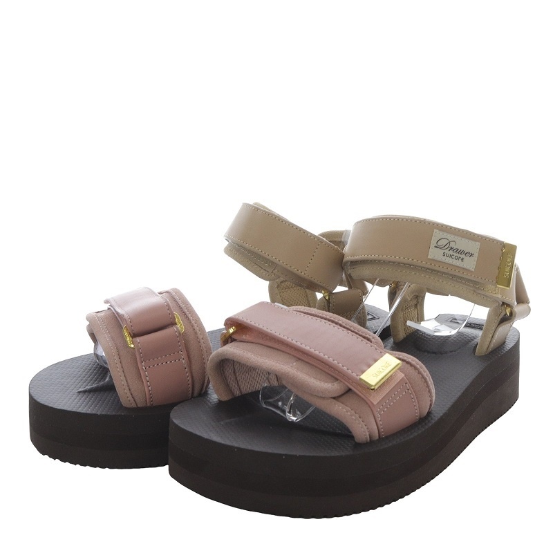 未使用品 スイコック suicoke Drawer Platform スポーツサンダル プラットフォーム ベルクロ 24cm ピンク ベージュ /YO15 レディース