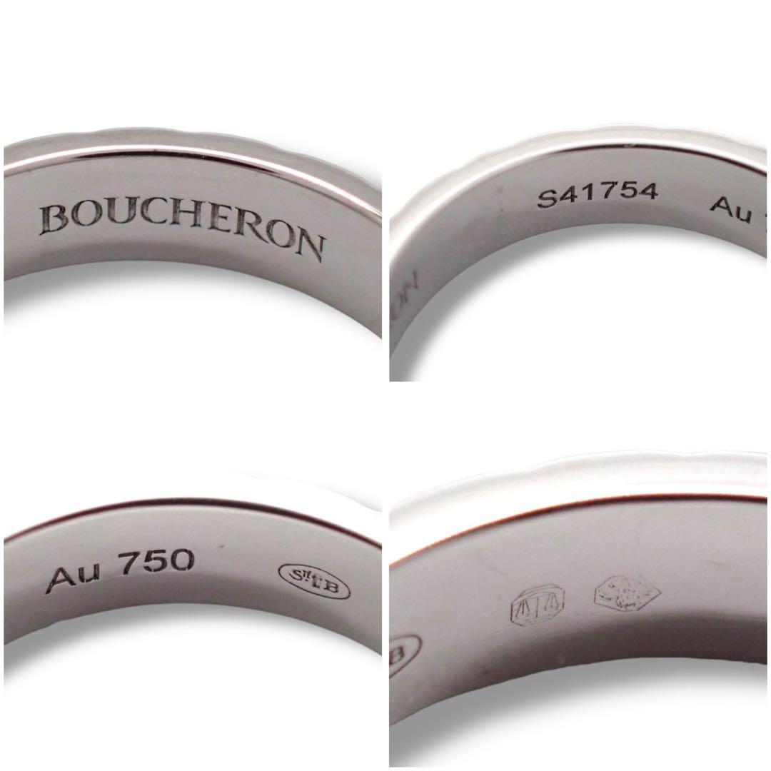 ブシュロンの人気ライン「キャトル ラディアント」のハーフリングです。上品なK18ホワイトゴールド製で、日常使いにも華やかさを添えます。リングサイズは6号。