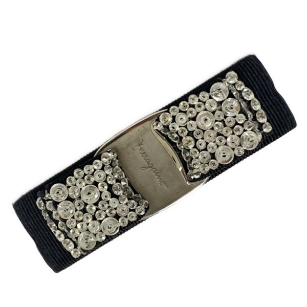 サルバトーレフェラガモ FERRAGAMO/SalvatoreFerragamo バレッタ - 黒×シルバー ラインストーン/ヴァラ アクセサリー(他)