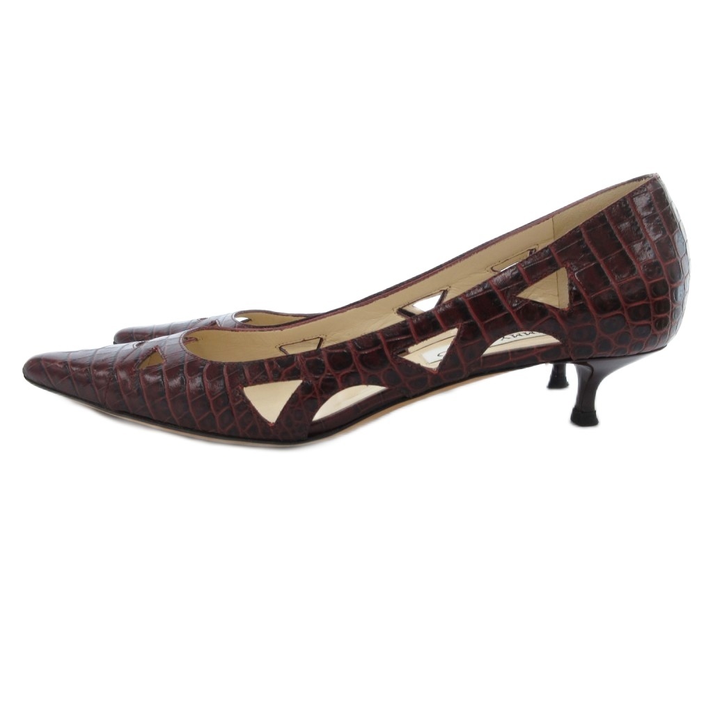ジミーチュウ JIMMY CHOO パンプス クロコ型押し レザー 37.5 ボルドー /JS レディース