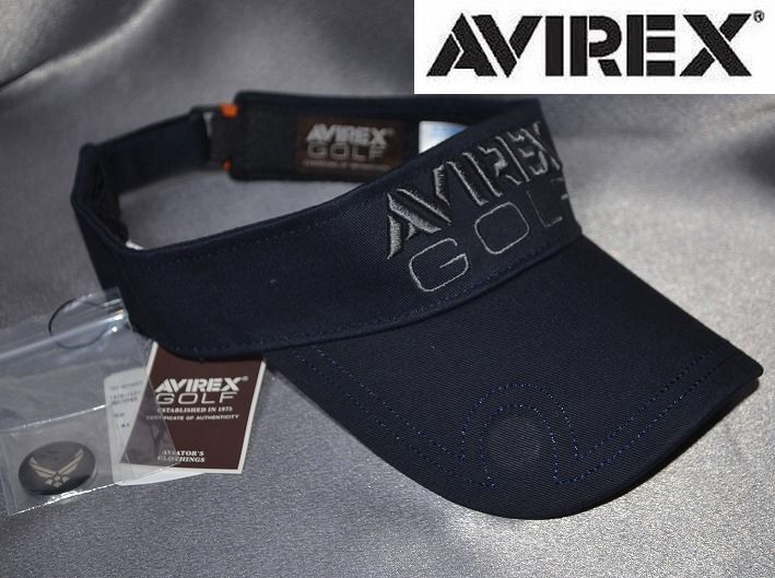 新品 アヴィレックス ゴルフ フリーサイズ58CM AVIREX GOLF サンバイザー メンズ マーカー付き バイザー ネイビー