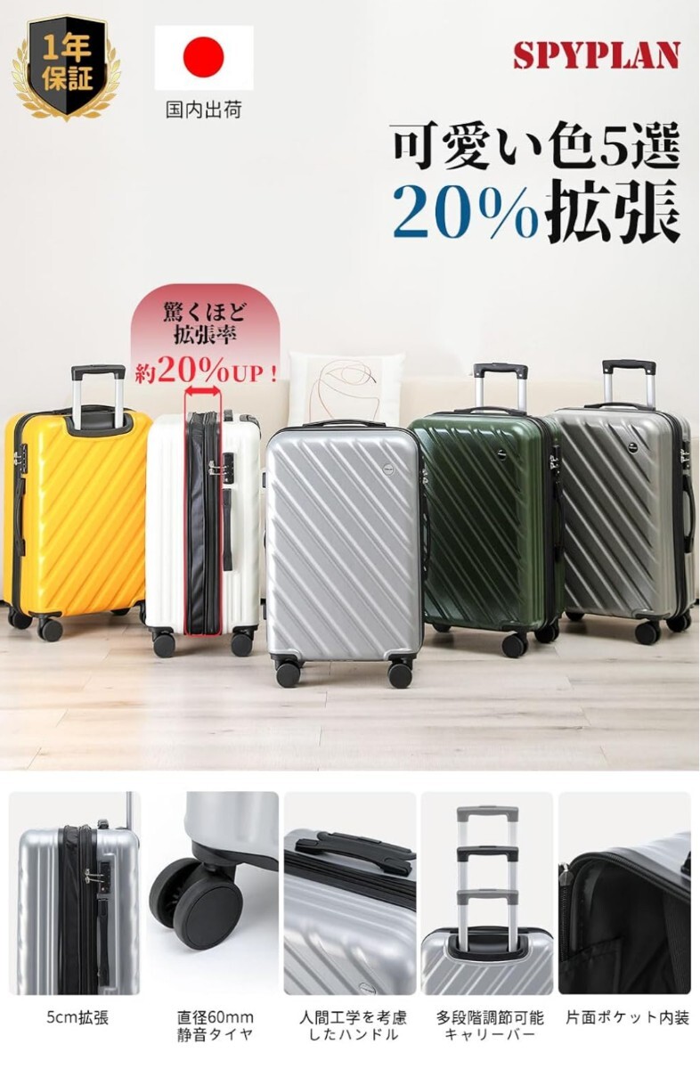 斜めラインデザイン 輝く45度斜めストライプを表面に施し、ビジネスから観光まであらゆるシーンで映えるモダンなフォルム。耐傷性ポリカーボネート素材で擦り傷を防止で新品美感を持続します。