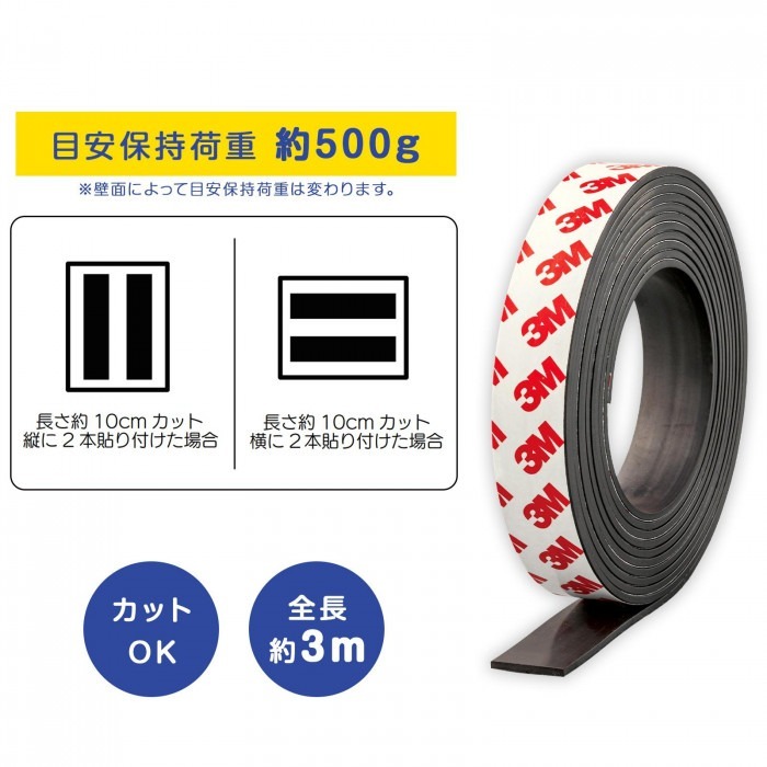 ◆ マグネットテープ 3m ◆ 好きな長さにカットできるマグネットテープ。 注:写真はイメージです。 【商品仕様】