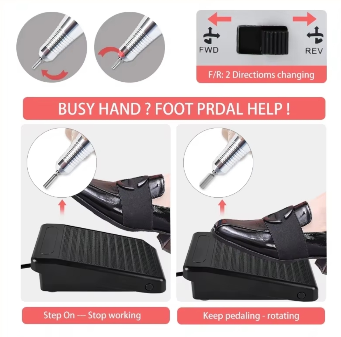 【新品】 可変 ミニルーター 便利なフットスイッチ付き 正転・反転 0-35000rpm ビット付き ★ 工作 ネイル ホビー