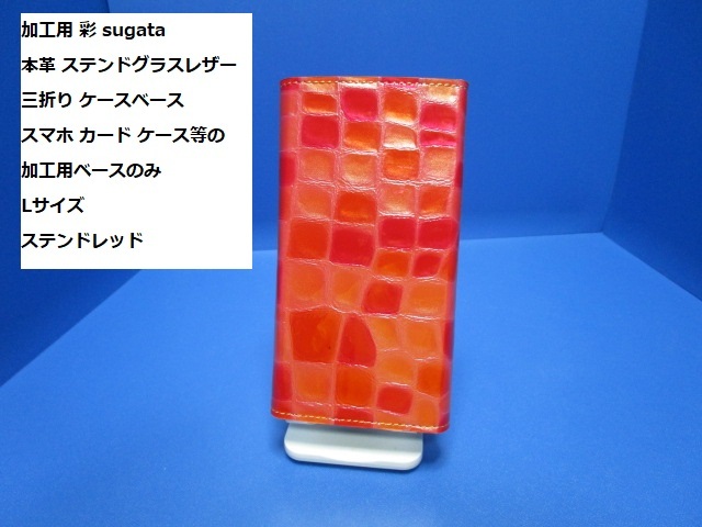 加工用 彩 sugata 本革 ステンドグラスレザー 三折り ケースベース スマホ カード ケース等の加工用ベースのみ Lサイズ ステンドレッド