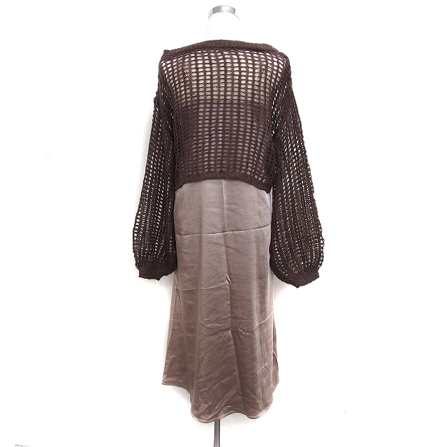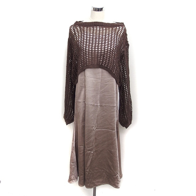 未使用品 ヘザー Heather タグ付き メッシュ ニット SET キャミ ツーピース ロング丈 F ブラウン 茶 ベージュ /FT36 レディース