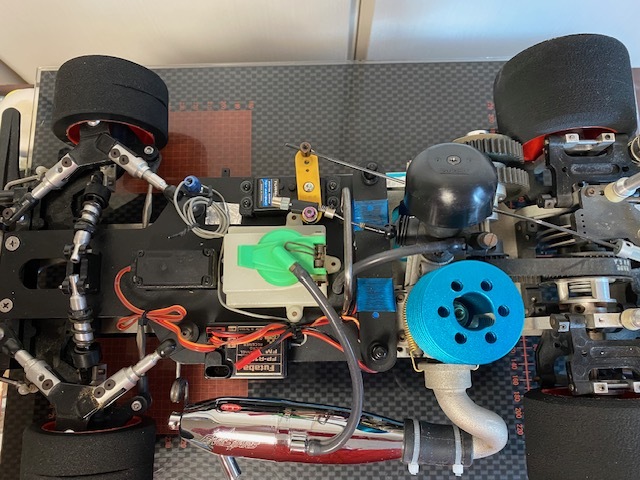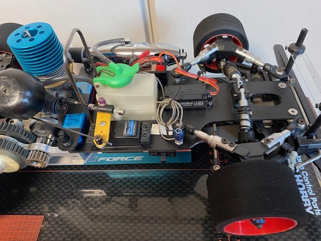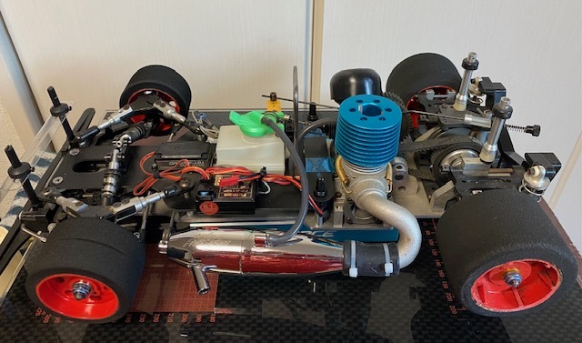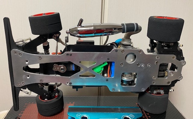 一応受信機用バッテリー、双葉のFM40メガの受信機もお付けしますので、送信機さえあれば作動は可能です。エンジンは新品とのこととパリスチューンということですが、始動させていません。Picooの15エンジンデルタシャフトですが、非常にきれいなので飾っておくだけでも映えますが、始動するなら慣らしから始めてください。クラッチは人によって違うのですが、私はシューにスプリング入れてます。DELTAはスプリング入れてないという人もいます。テストしながら始動ください。ワンセットの新品ホイルと赤ホイルのタイヤですが、もともとそうなのですが、フロントはP2用を、リヤはP4用のものをカットして装着してます。