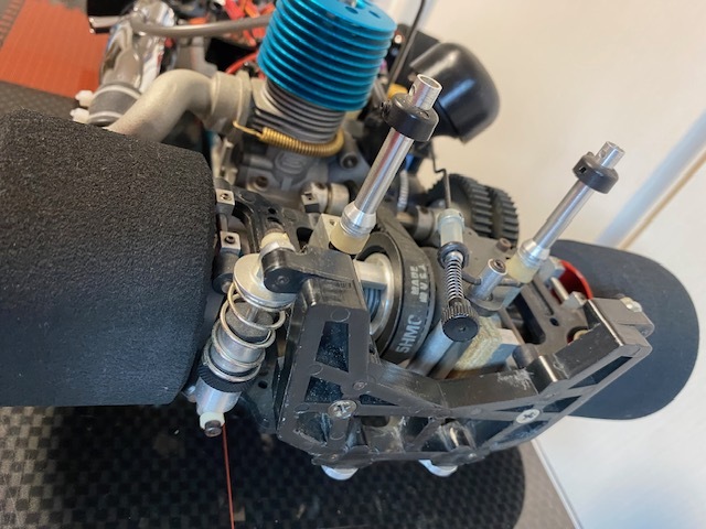 購入は当オークションで10年ぐらい前に購入しました。一応新品ということで購入しましたが、確かに未走行だと思いますが、右リヤハブだけは中古だと思います。前所有者が2か所で止めるアッパーのサスピンを違うサイズのネジでねじ込み、何かの理由で折ってしまったために片側のみインチサイズのイモネジをねじ込むことできません。幸いなことに、下まで届いてないのでピンは問題なく差し込めて、1本のインチサイズイモネジは締めこめること可能なのでとりあえずは問題ないと思います。走行時心配なら、現状はツーリングカーなのでウィングステー外してありますが、スペースあるので、市販のストッパーで止めれば問題ないと思います。