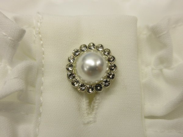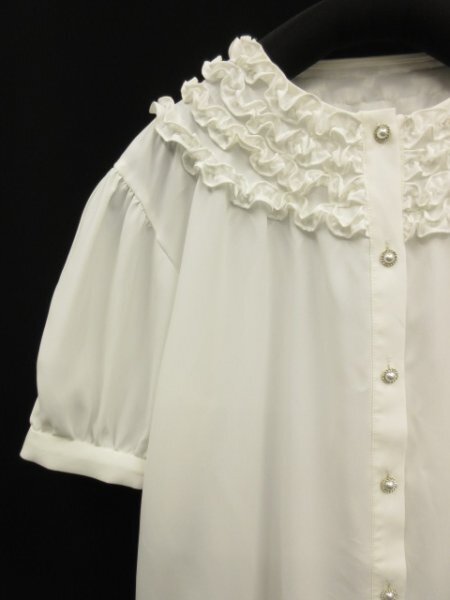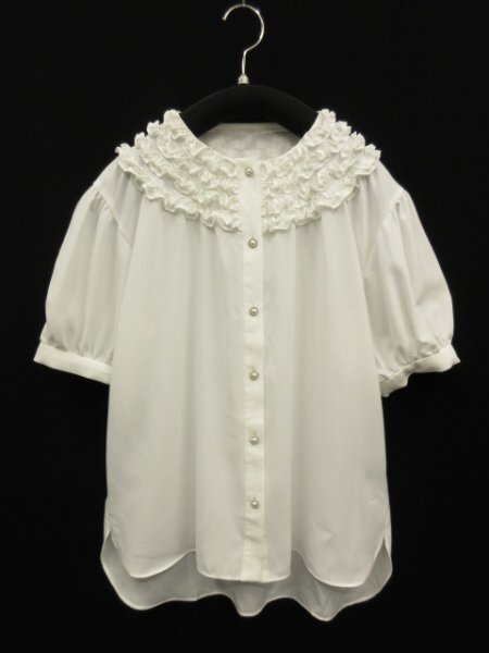 プチフリルとパールビジューボタンがキュートなブラウス