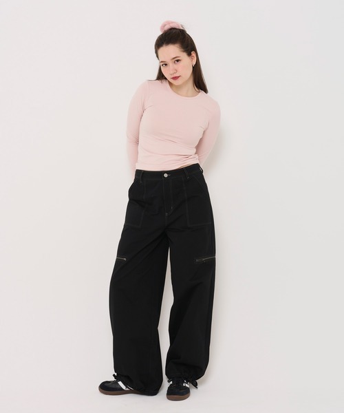 キーワード:カーゴパンツ レディース ハイウエスト フルレングス ワイドパンツ