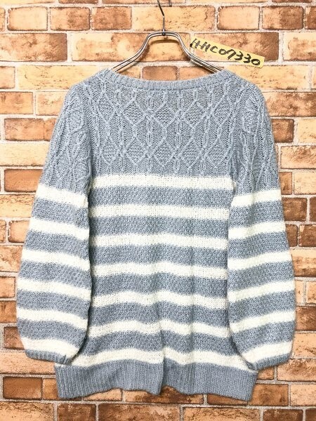 INGNI イング レディース ケーブル ボーダー チュニック セーター M 青 アクリル