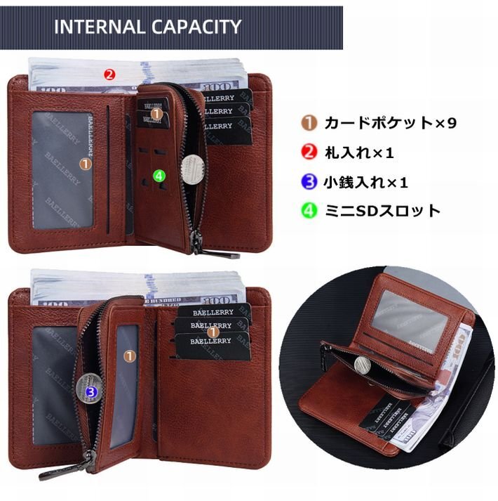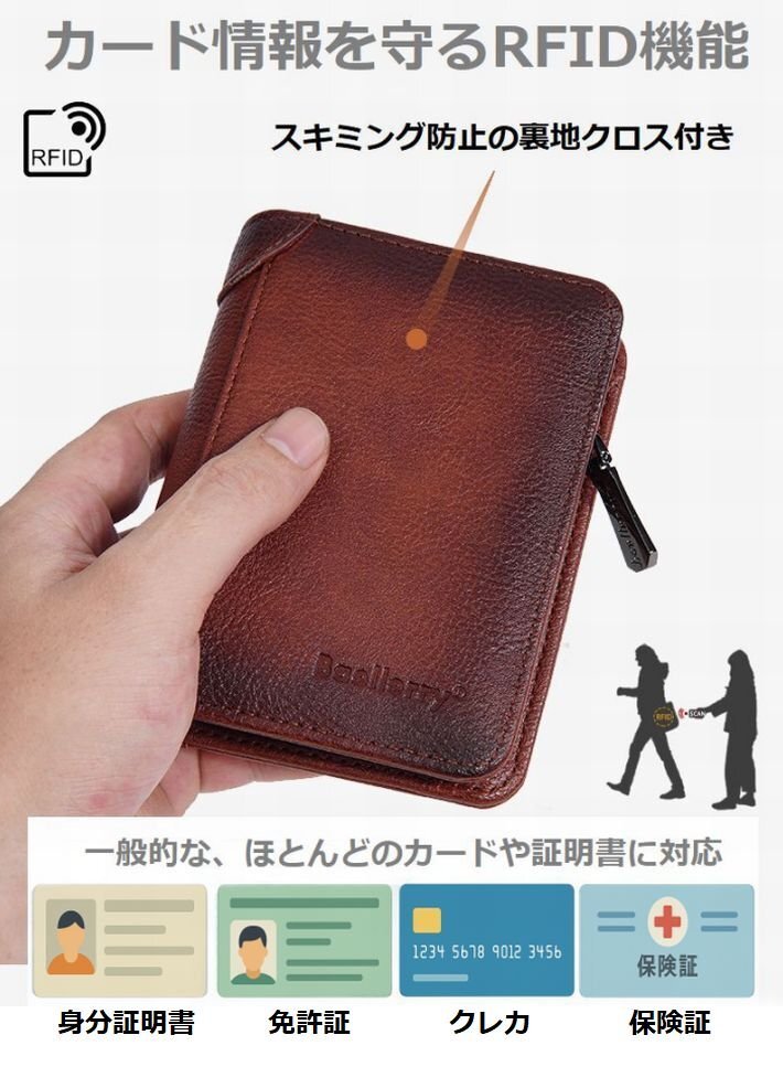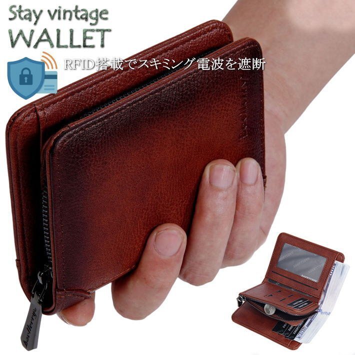 ミニ財布 ミニウォレット 短財布 メンズ レディース ウォレット プレゼント RFID搭載 スキミング防止 7986756 ダークブラウン 新品