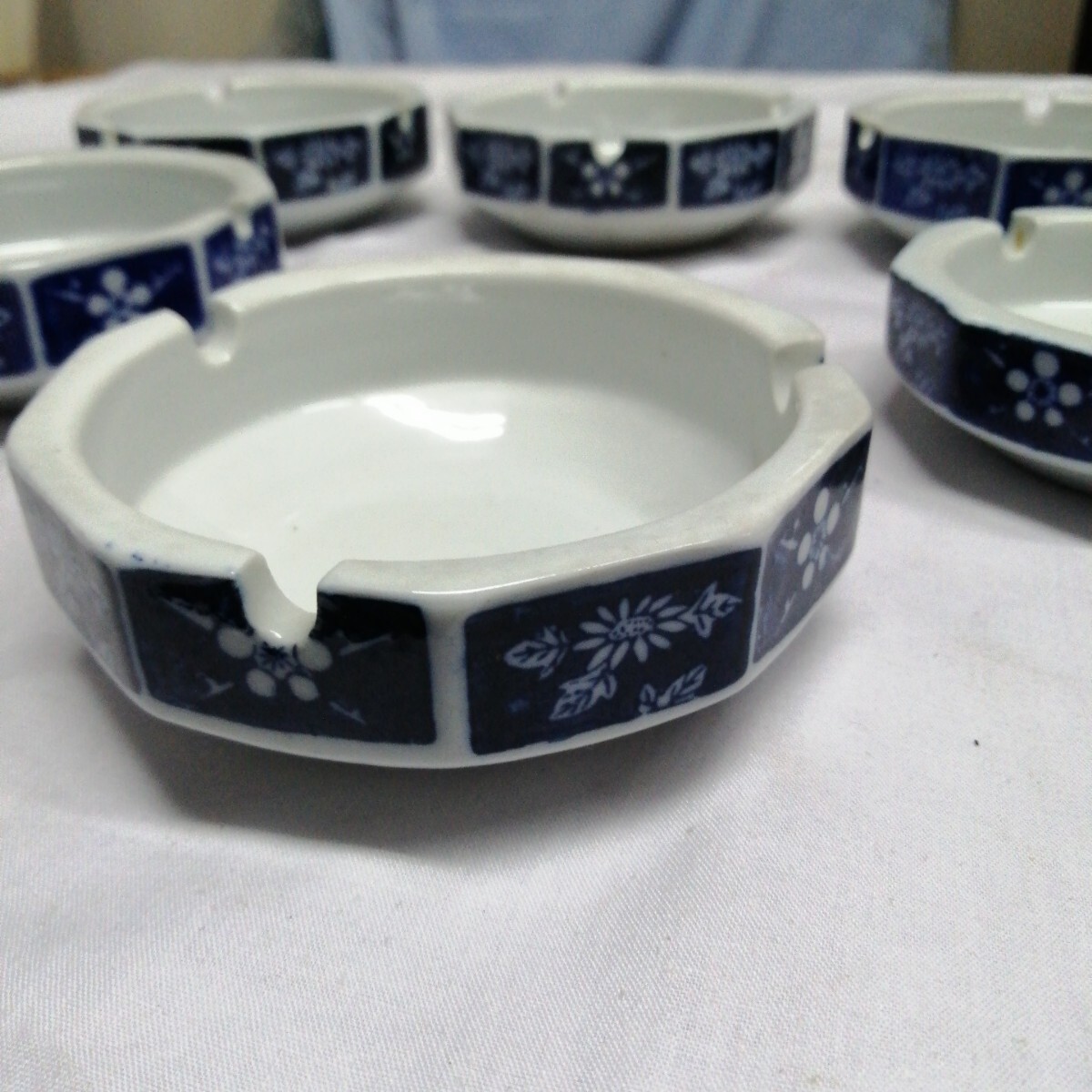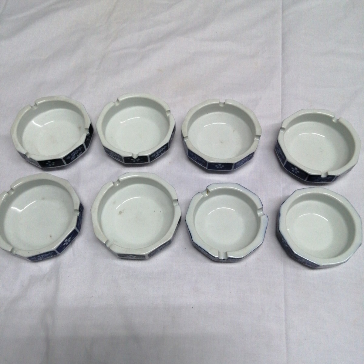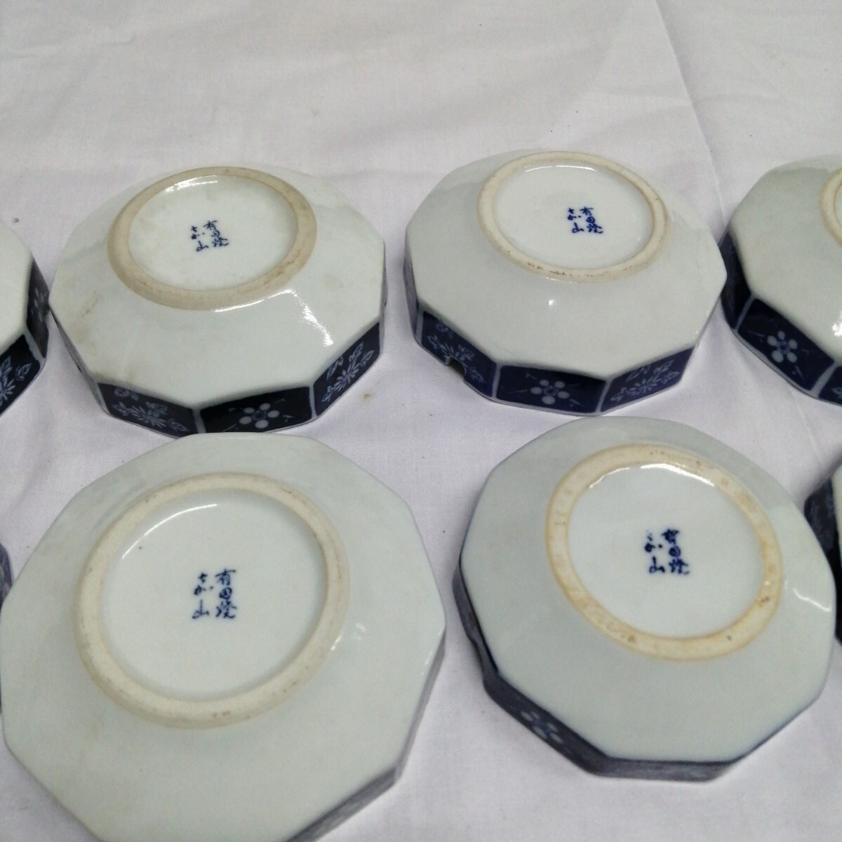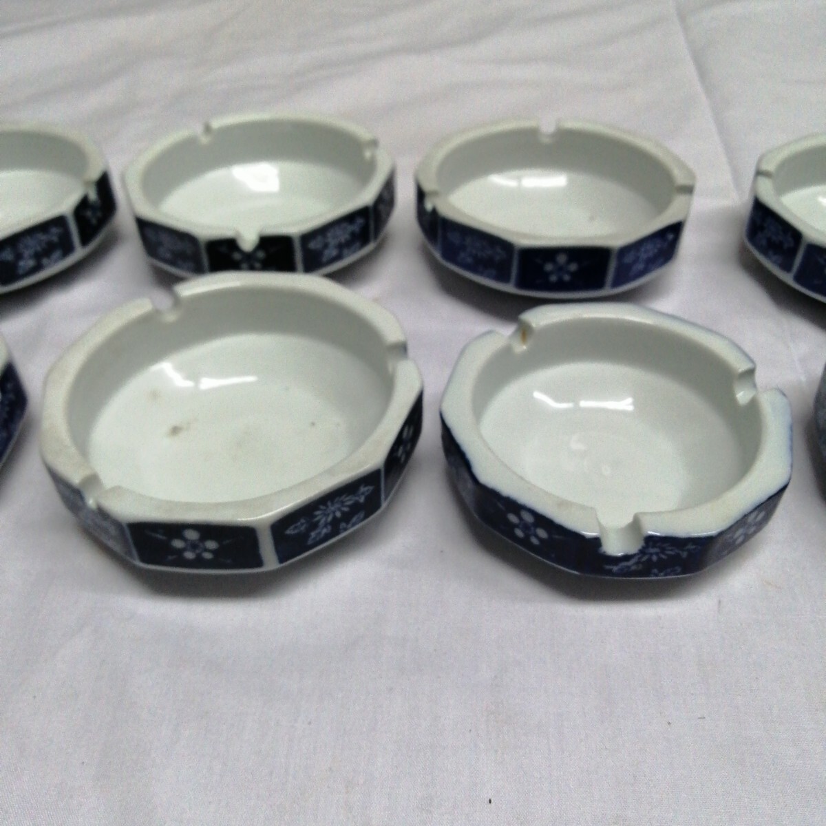 計8個 有田焼 灰皿 とが山 黒髪山 花柄 十角 煙草
