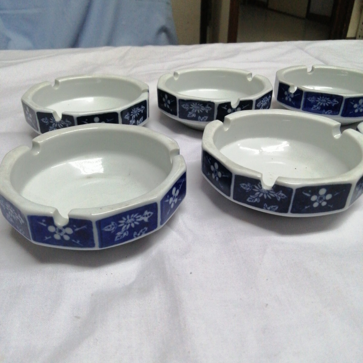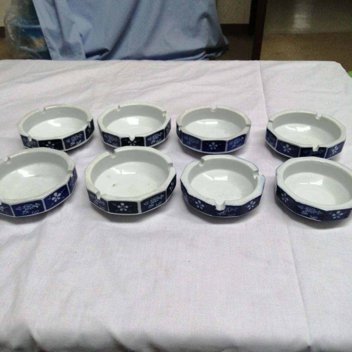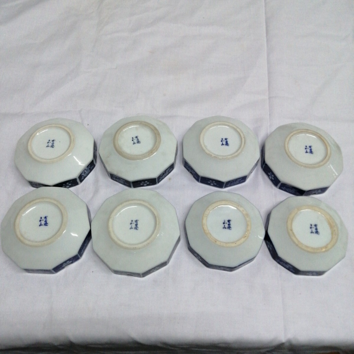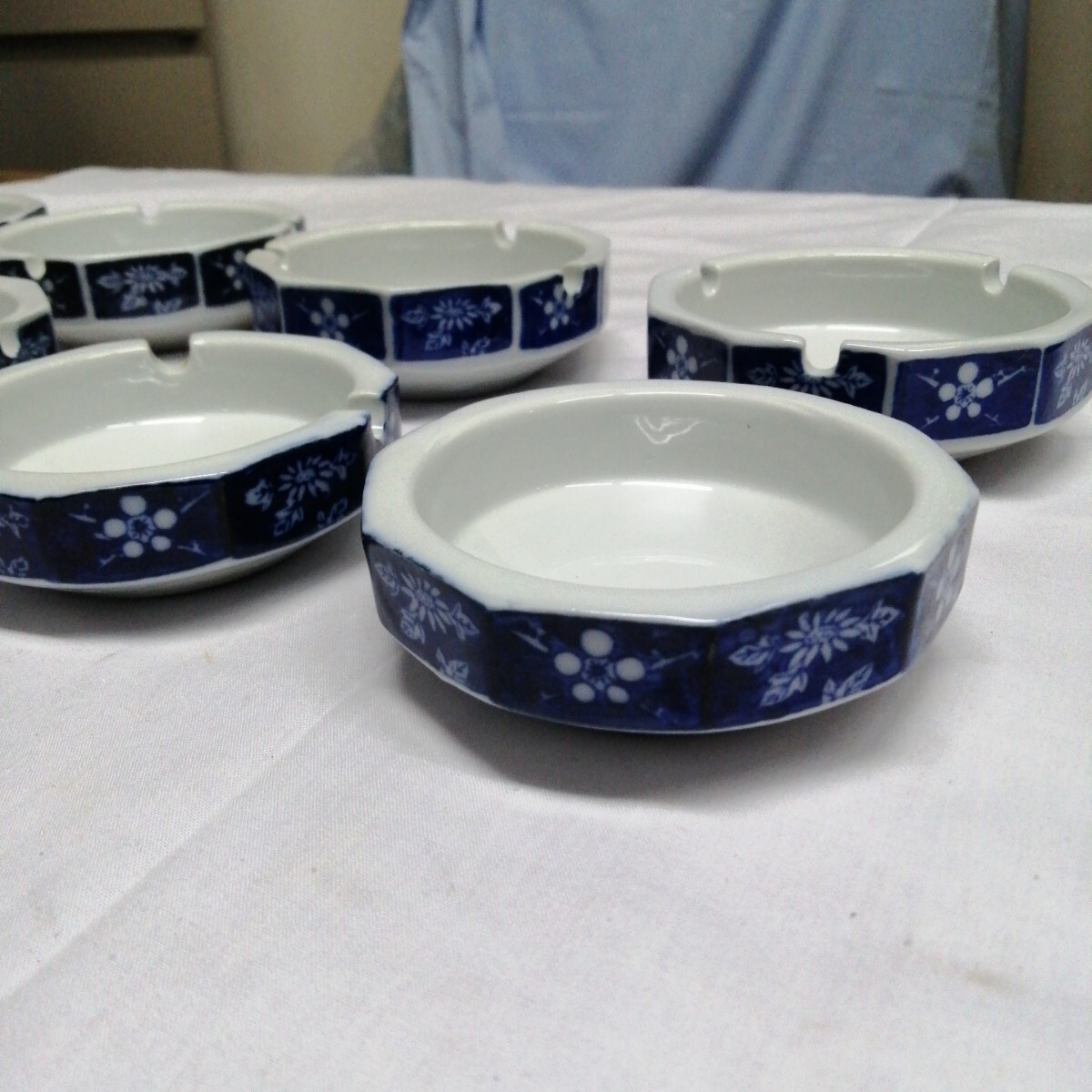 計8個 有田焼 灰皿 とが山 黒髪山 花柄 十角 煙草