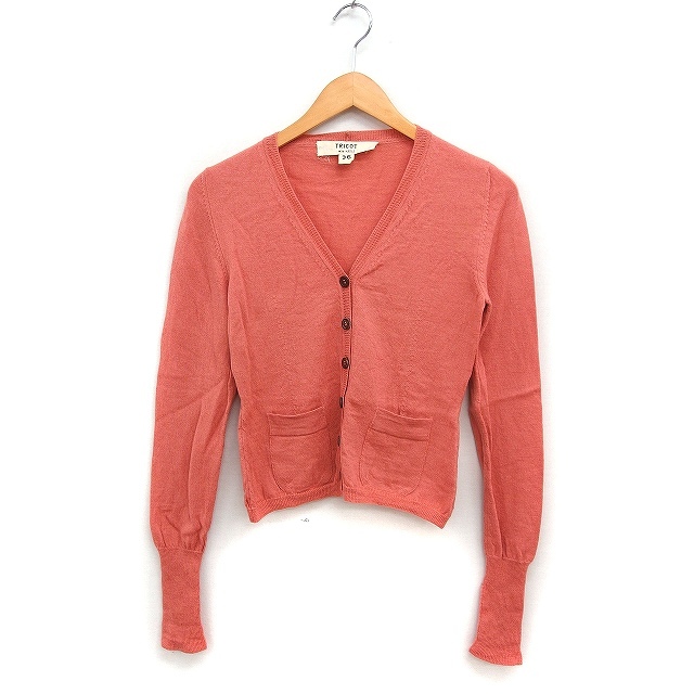 ウィムニールス WIM NEELS TRICOT ウール ニット カーディガン Vネック 無地 36 コーラルピンク /FT32 レディース