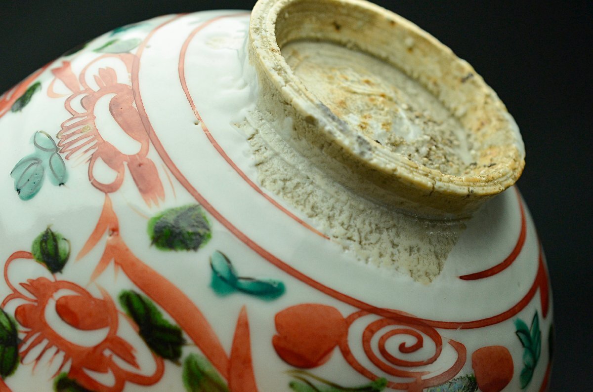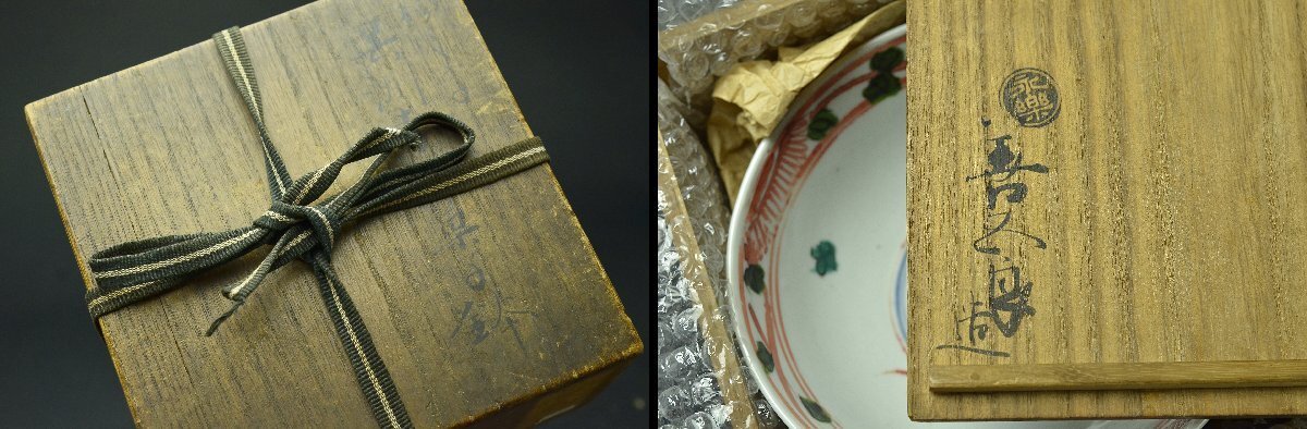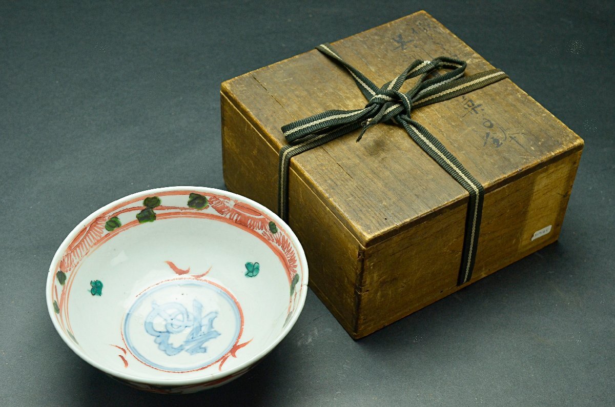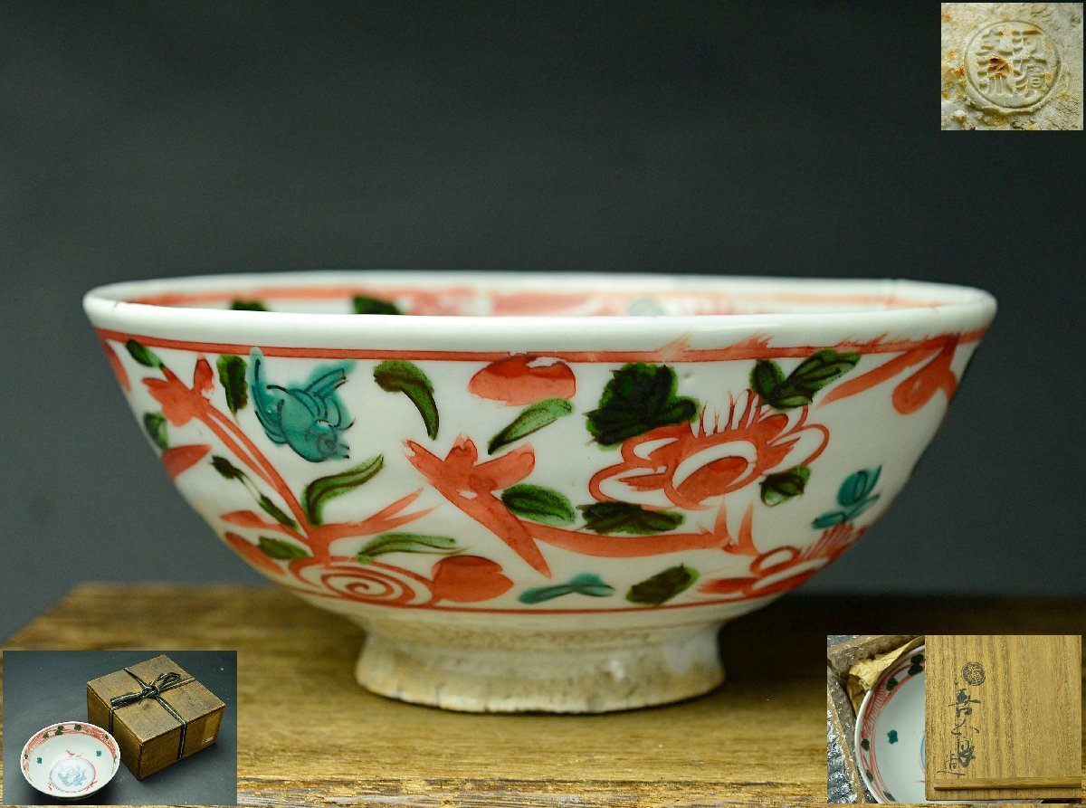 【YB】永楽河濱支流造 福字呉州赤絵菓子鉢・共箱付属 ★中国日本古玩骨董25Y755