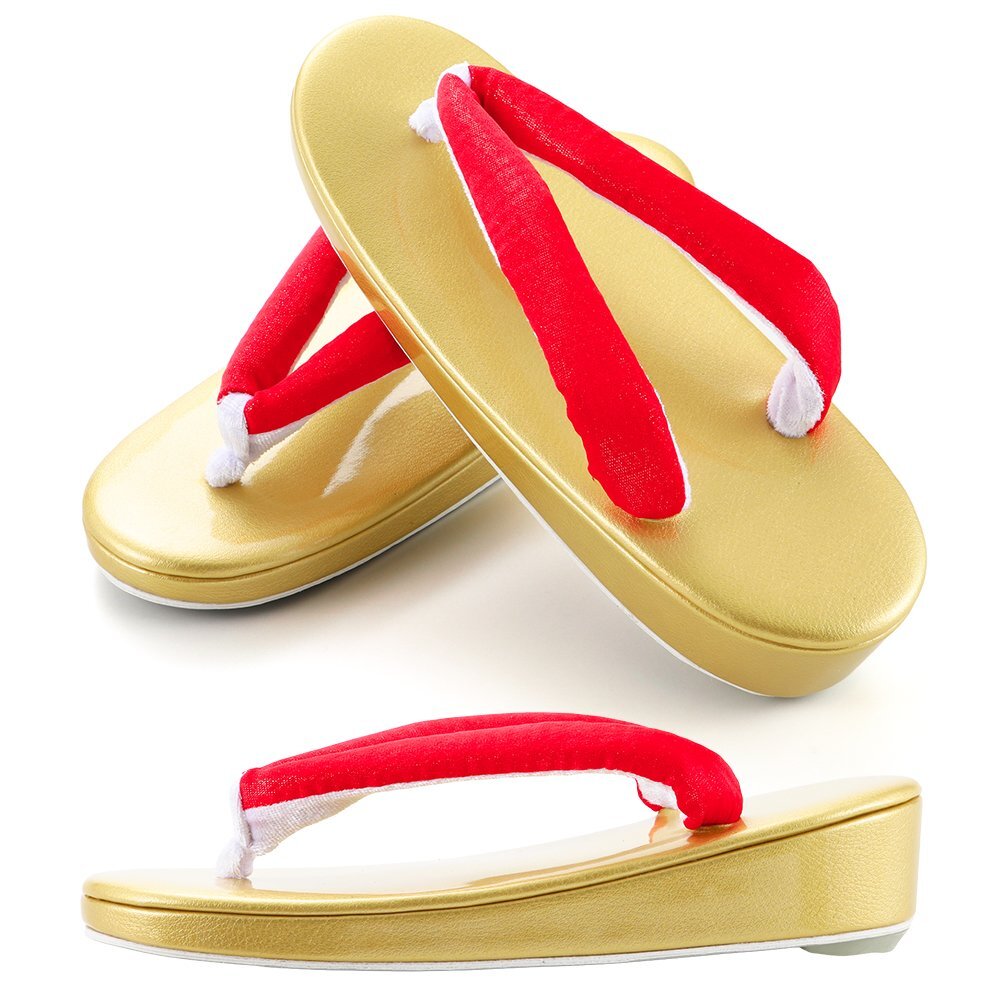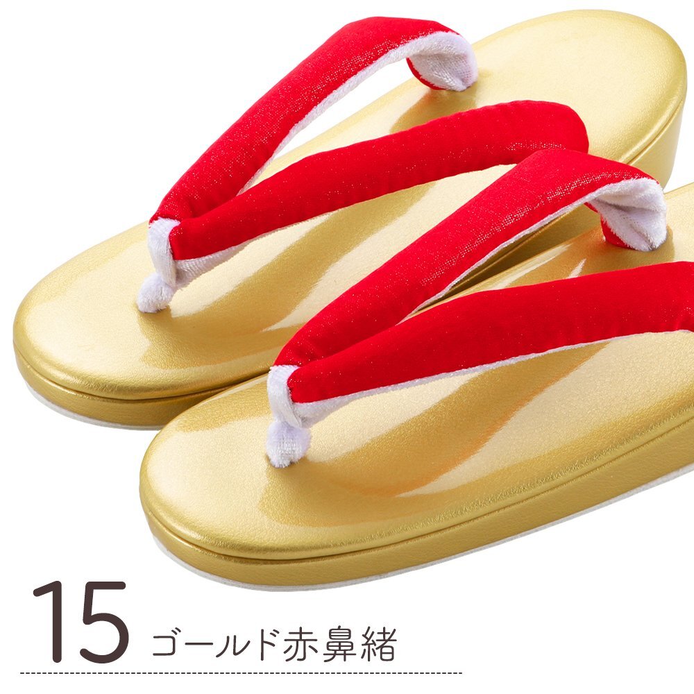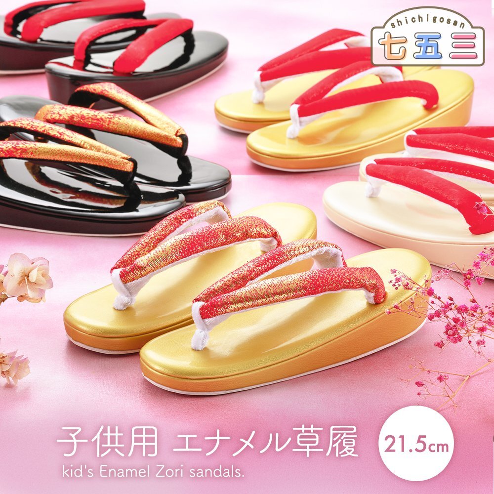 ◆七五三◆草履 お子様用 七才 エナメル台 21.5cm sz-107 (15ゴールド赤鼻緒)【女の子 子供 着物 和服 ぞうり はきもの お正月】