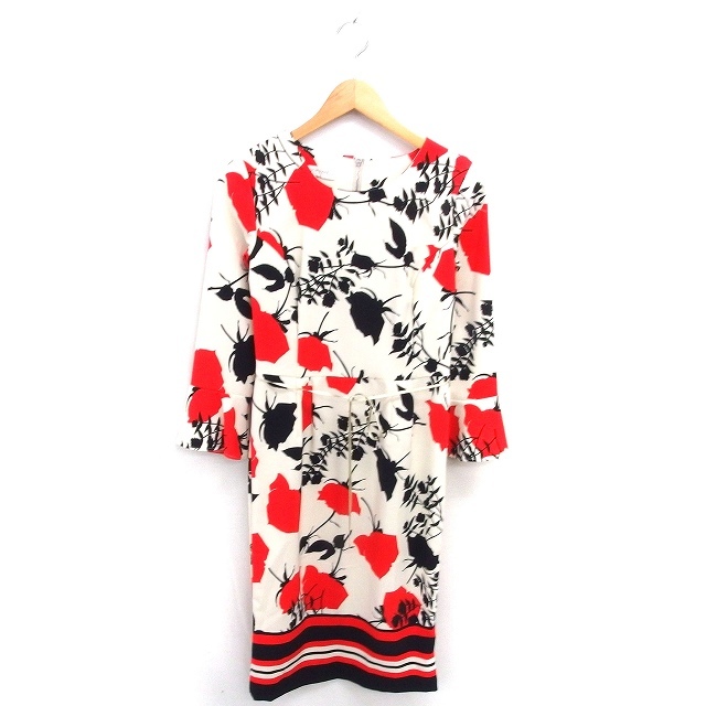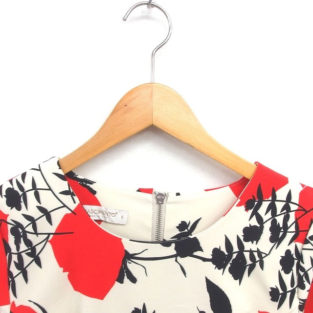 リナシメント RINASCIMENTO ワンピース ロング 花柄 プルオーバー ベルスリーブ 長袖 S ライトベージュ オレンジ 薄茶 /TT22 レディース
