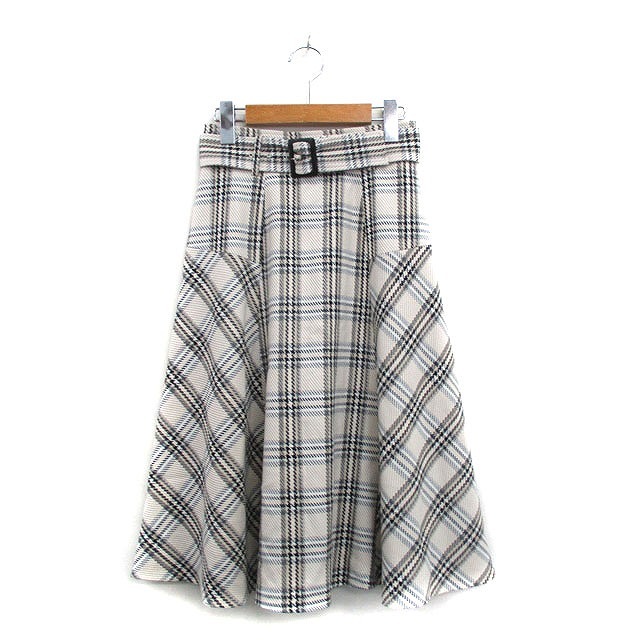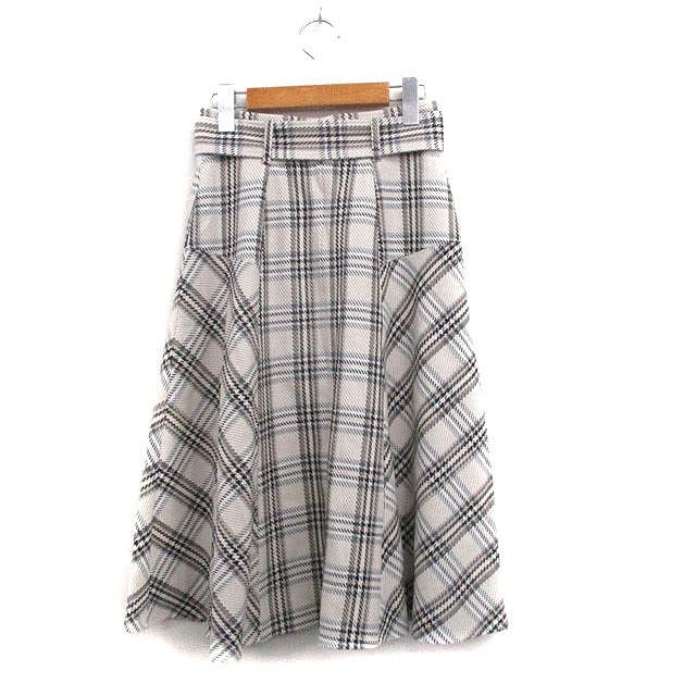 アプワイザーリッシェ Apuweiser-riche フレア スカート ロング ベルト チェック 0 アイボリー 白 /KT6 レディース