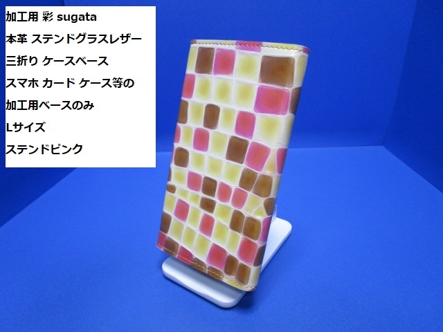 加工用 彩 sugata 本革 ステンドグラスレザー 三折り ケースベース スマホ カード ケース等の加工用ベースのみ Lサイズ ステンドピンク