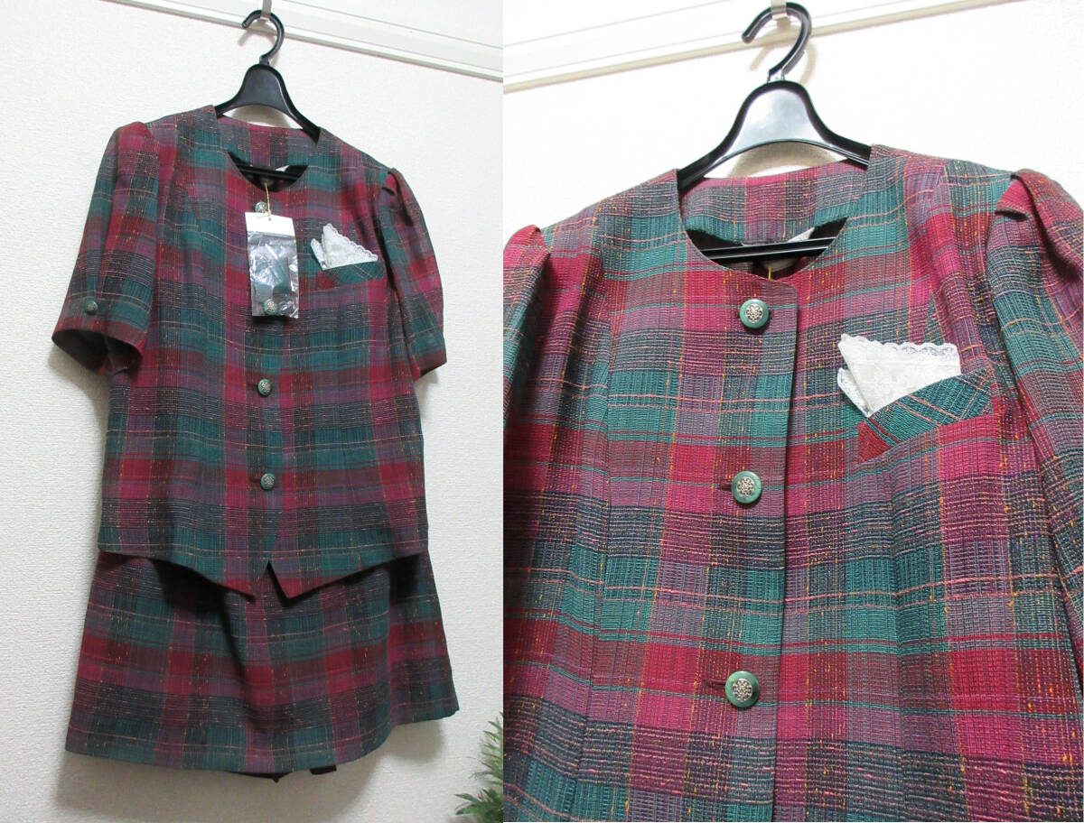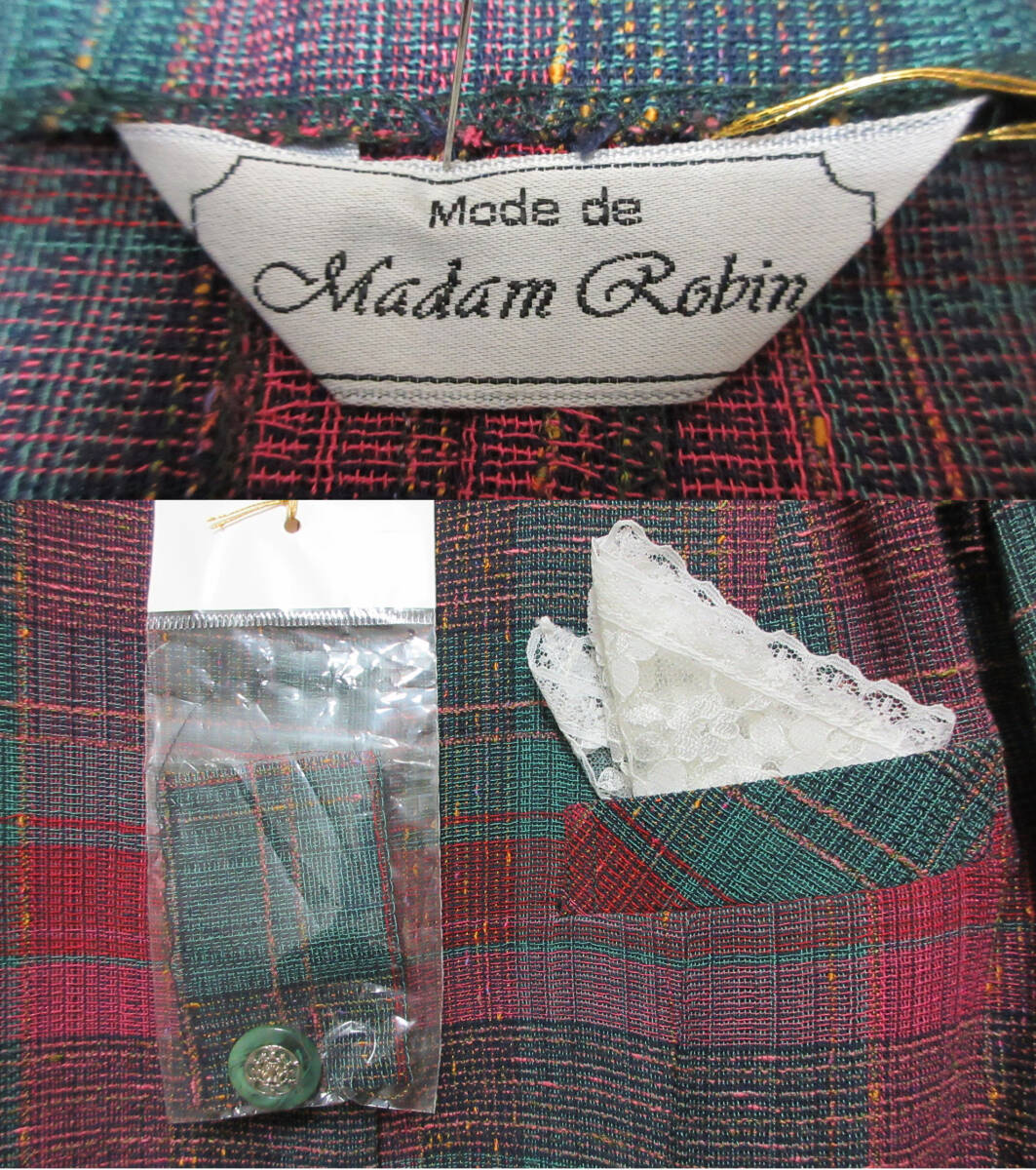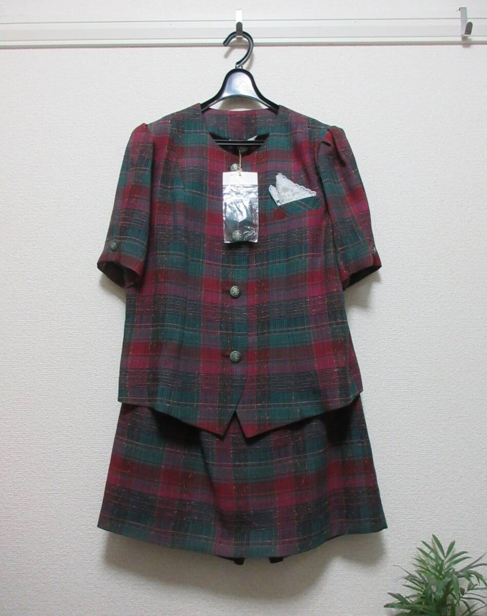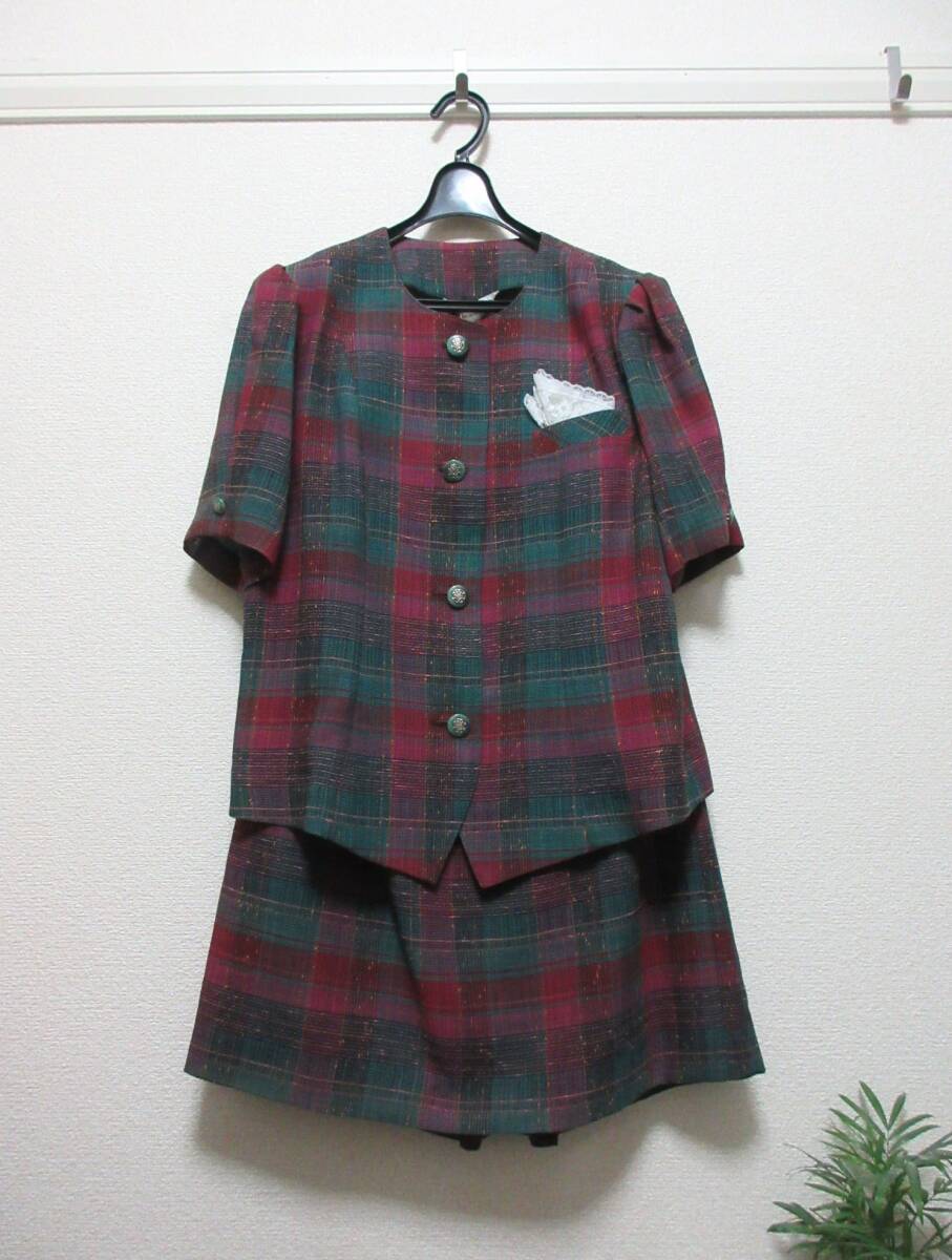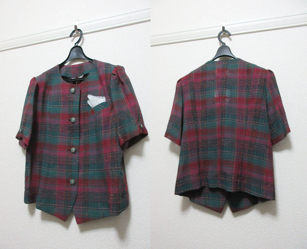 | ■商品説明■ | 【ノーカラーフォーマルセットアップスーツ】の出品です。 メーカー:【Madam Robin】マダムロビン【日本製】 カラー:赤レッド、緑グリーン、黒ブラック、黄色イエロー(チェック柄) 品質:表地:トリアセテート70%、ポリエステル30%(裏地:ポリエステル100%) サイズ:13号(Lサイズ) 重さ:410g 【ジャケット】 ●肩幅:38cm ●身幅:51cm ●着丈:52.5cm 【スカート】 ●スカート丈:62cm ●ヒップ:51cm ●ウエスト:76cm 【ポケットチーフ付き、替えのボタンと生地付き】 【特徴】 Madam Robin(マダムロビン)の未使用のフォーマルセットアップスーツになります。 フォーマルな席にも着て頂けるノーカラーのアウター。 丸襟ネック(ノーカラー)は、結婚式や、お子様の入学式、卒業式、記念式典、謝恩会、パーティー等の フォーマルな席、 授業参観などのちょっとした席にも1枚あると大変便利なアイテムです。 生地にトリアセテートが使われているため吸湿性がありシルクのような光沢と滑らかさがあります。 夏場の時期も、比較的サラリと着て頂けると思います。 ポリエステルも使わせているため、丈夫でシワになりにくく学生服にも使われるほど耐久性があります。 初夏から秋口にかけて、冷房の利いた室内と外気温の差が激しい季節となりますが ブラウスやキャミソール等の上に羽織って頂けると体温調節がうまくできるのではないでしょうか。 色見はワインレッド(ボルドー色)えんじ色、深緑(ダークグリーン)のチェック模様で、 黒や黄色の糸も織り込まれています。 近くで見ると様々なカラーが織り込まれていますが全体的に見ると落ち着いた色身になっています。 胸元にポケットチーフ(小さなレースのハンカチ)が折りたたんで入っています。 スカート背面にはタック(ひだ)が入っているため動きやすいデザインになっています。 また、深緑の裏地がついていて透け防止になっています。 替えのボタンと生地も付いています。 白色や同系色の赤系、緑系のブラウスやキャミソールなどと組合わせて頂くとしっくりくるかと思います。 比較的 落ち着いた色味になりますので、 フォーマルな席だけでなく オフィスワーク等にも着て頂けると思います。 日本製ですので縫製など仕立ては丁寧に作られています。 肩パットがついています。必要がなければ取り外して調整してください。 80年代ファッションを着こなしたい方にもよいかと思います。 未使品(新品・自宅保管品)になります。衣類品整理の為に出品します。ご活用頂ける方に。 商品の状態は画像をご参考にしてください。 自宅保管にて、神経質な方や細かい点を気になさる方は入札をお控えください。 商品説明に関して、あくまでも主観であり、詳細な状態に気付かない場合があります。 以上をふまえた上、ノークレーム、ノーリターンでお願い致します。 |