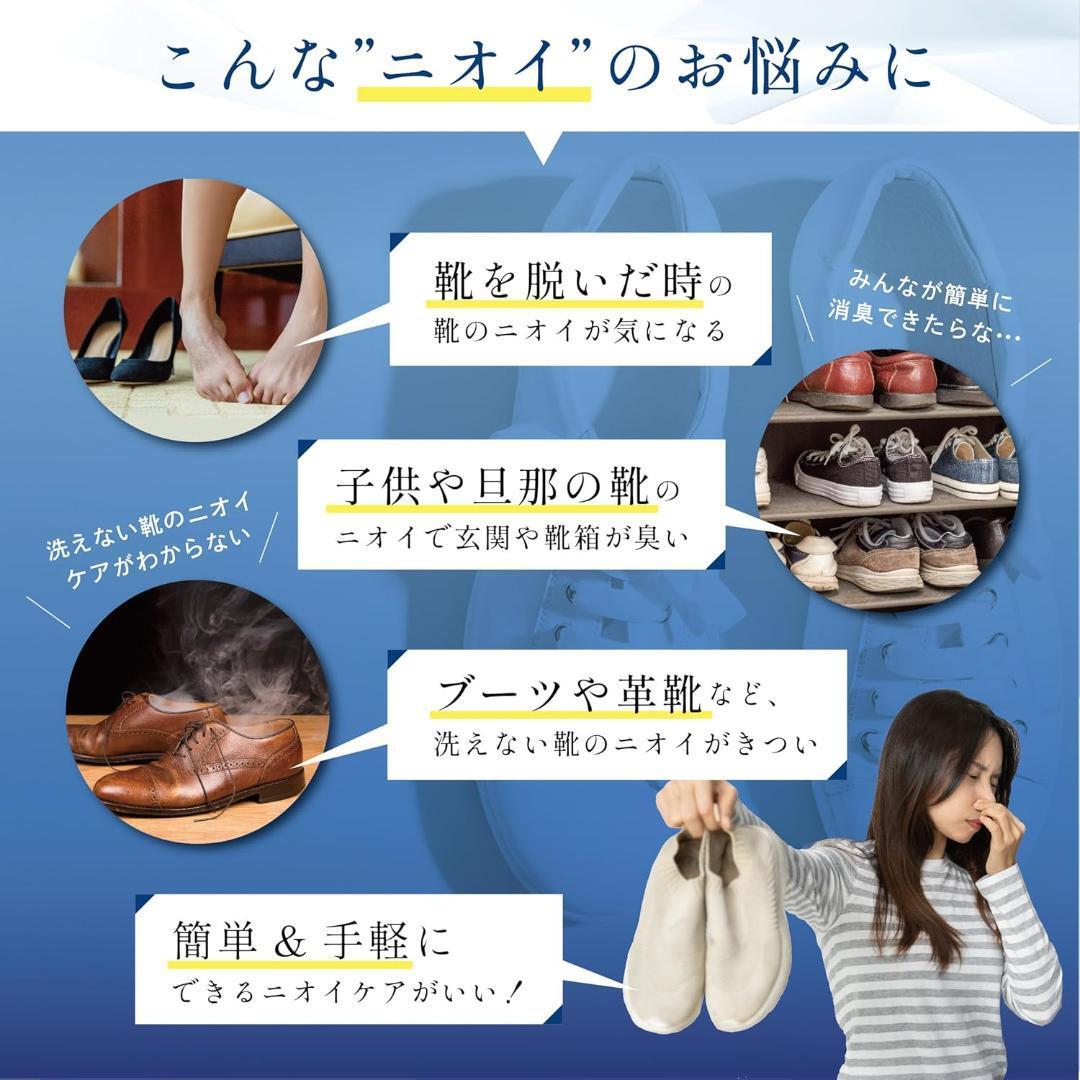 【選ばれる6つの理由】 1、99.9%※ニオイを徹底消臭!気になる靴のニオイをしっかり除去。消臭試験でも高い効果を実証済み。