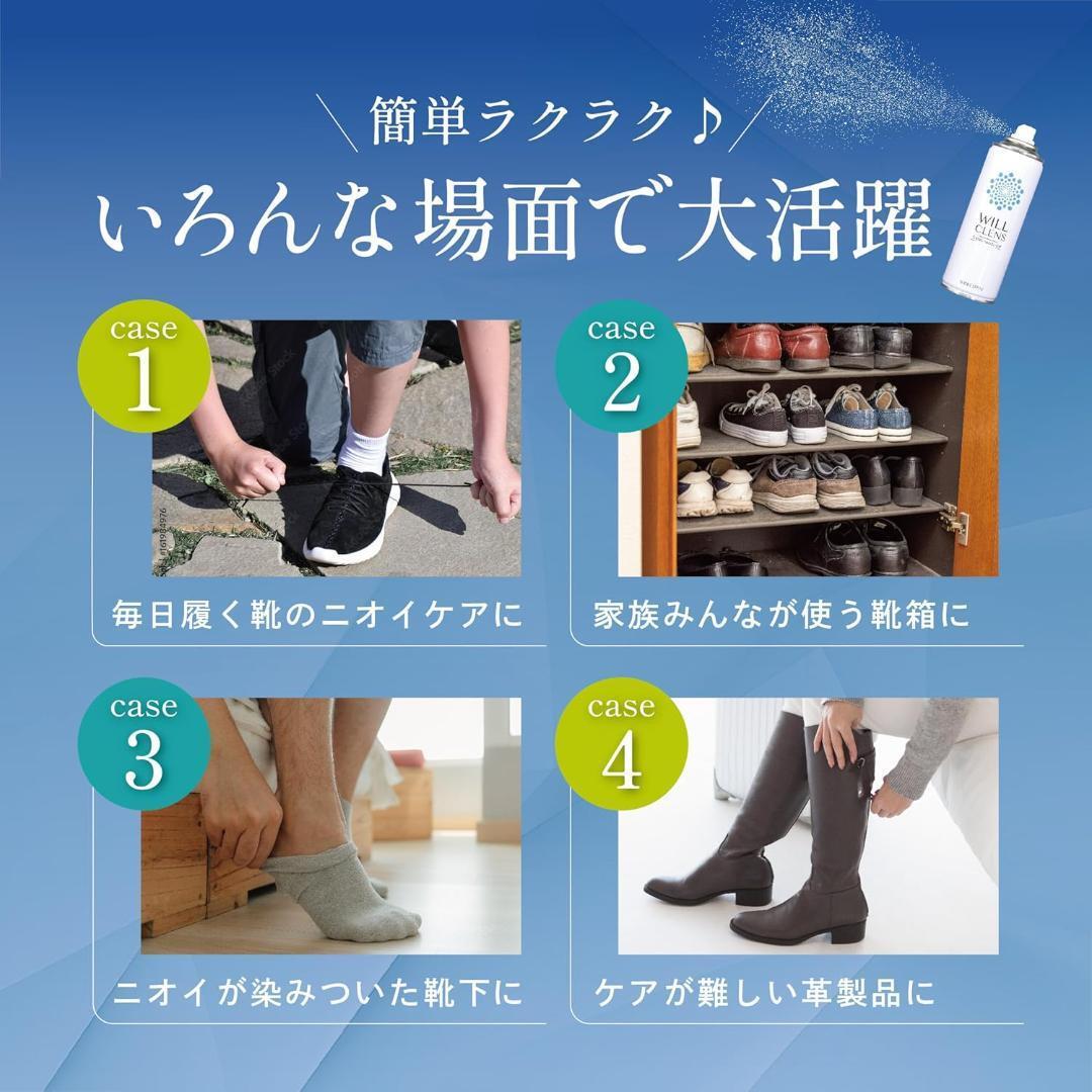 「靴のニオイが気になるけど洗えない」「家族の靴箱がなんだか臭う…」そんなお悩みに! WILL CLENS 靴用消臭スプレーは、シュッとするだけでニオイを瞬時にリセット。消臭力・除菌力・除湿力を兼ね備えた靴専用スプレーです。